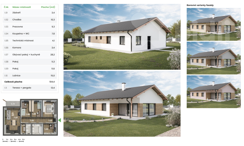 Potenciální čistá podlahová plocha jednopodlažního RD: 120.6 m2.