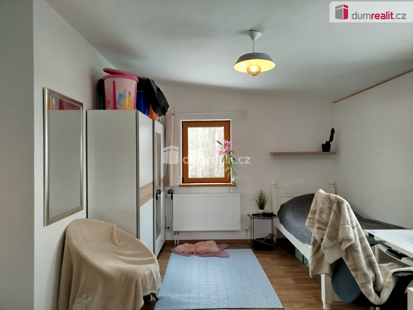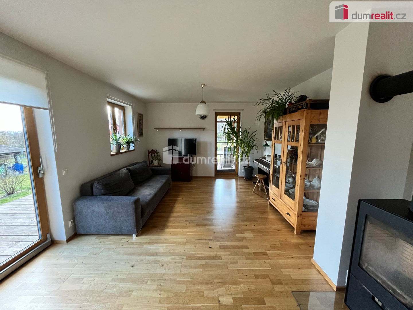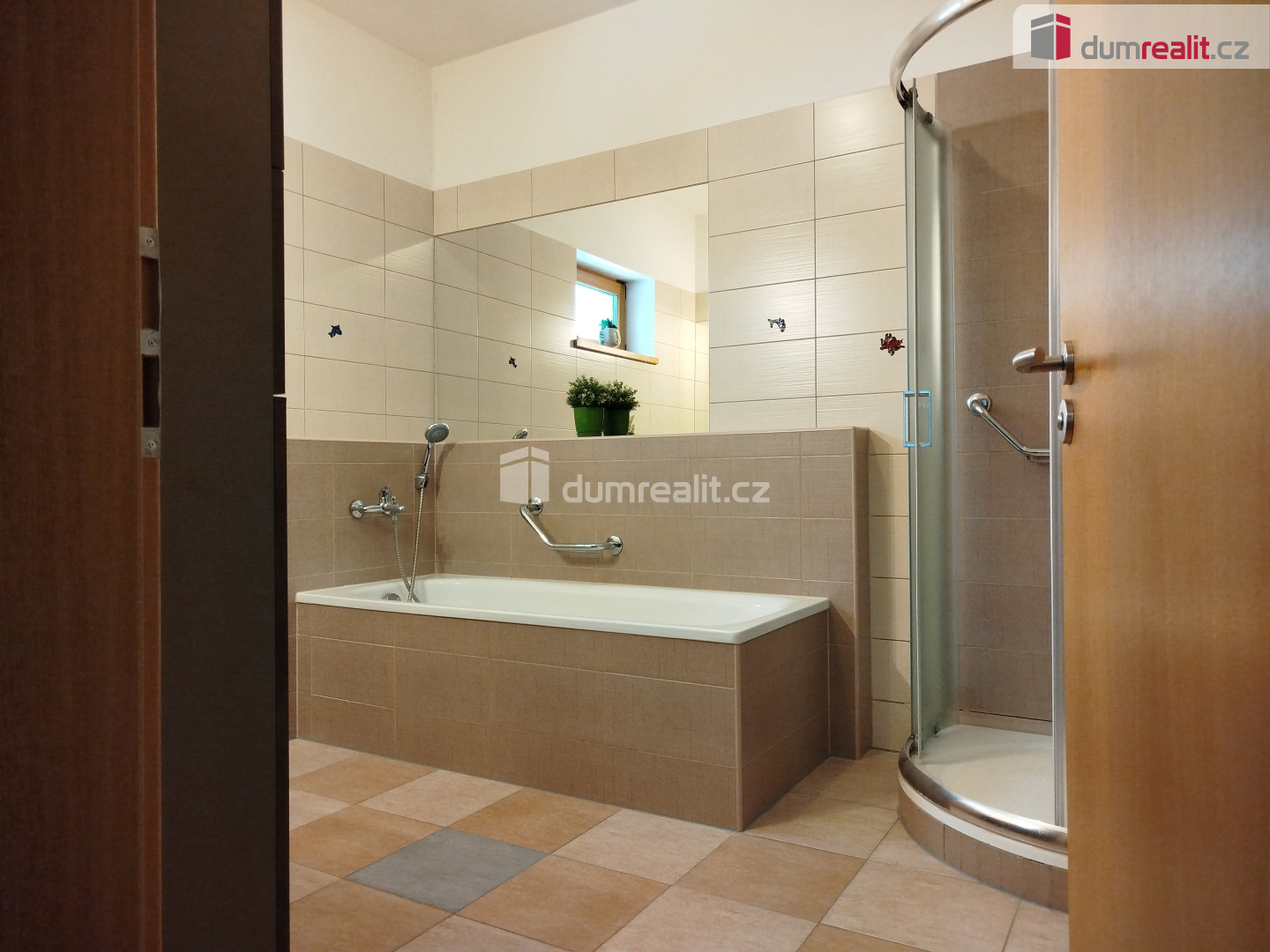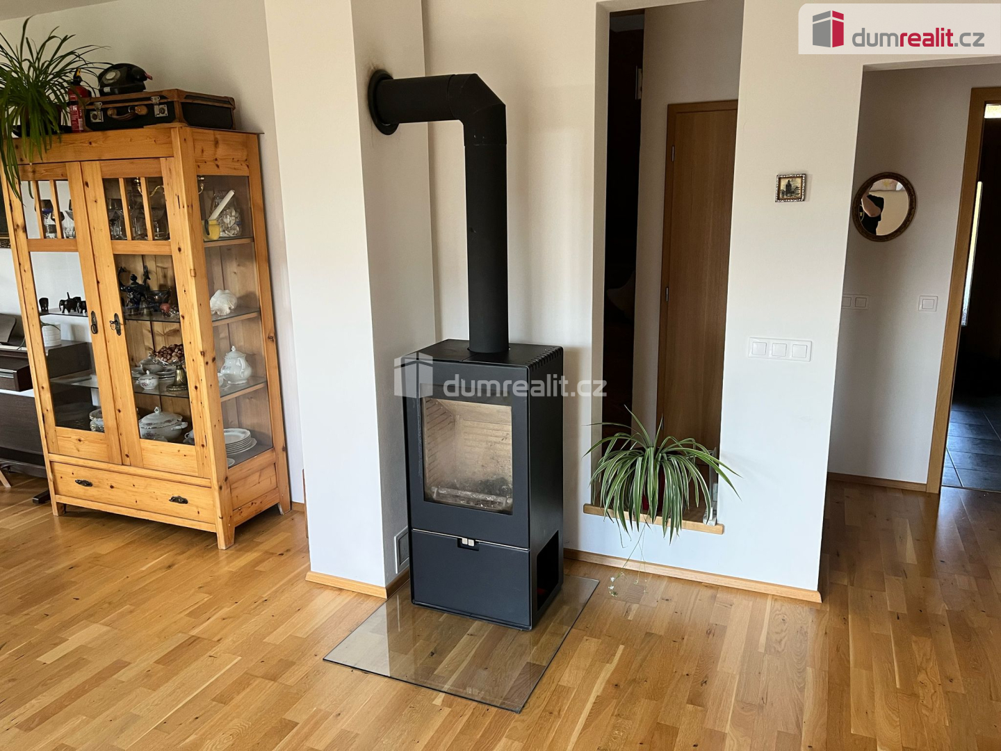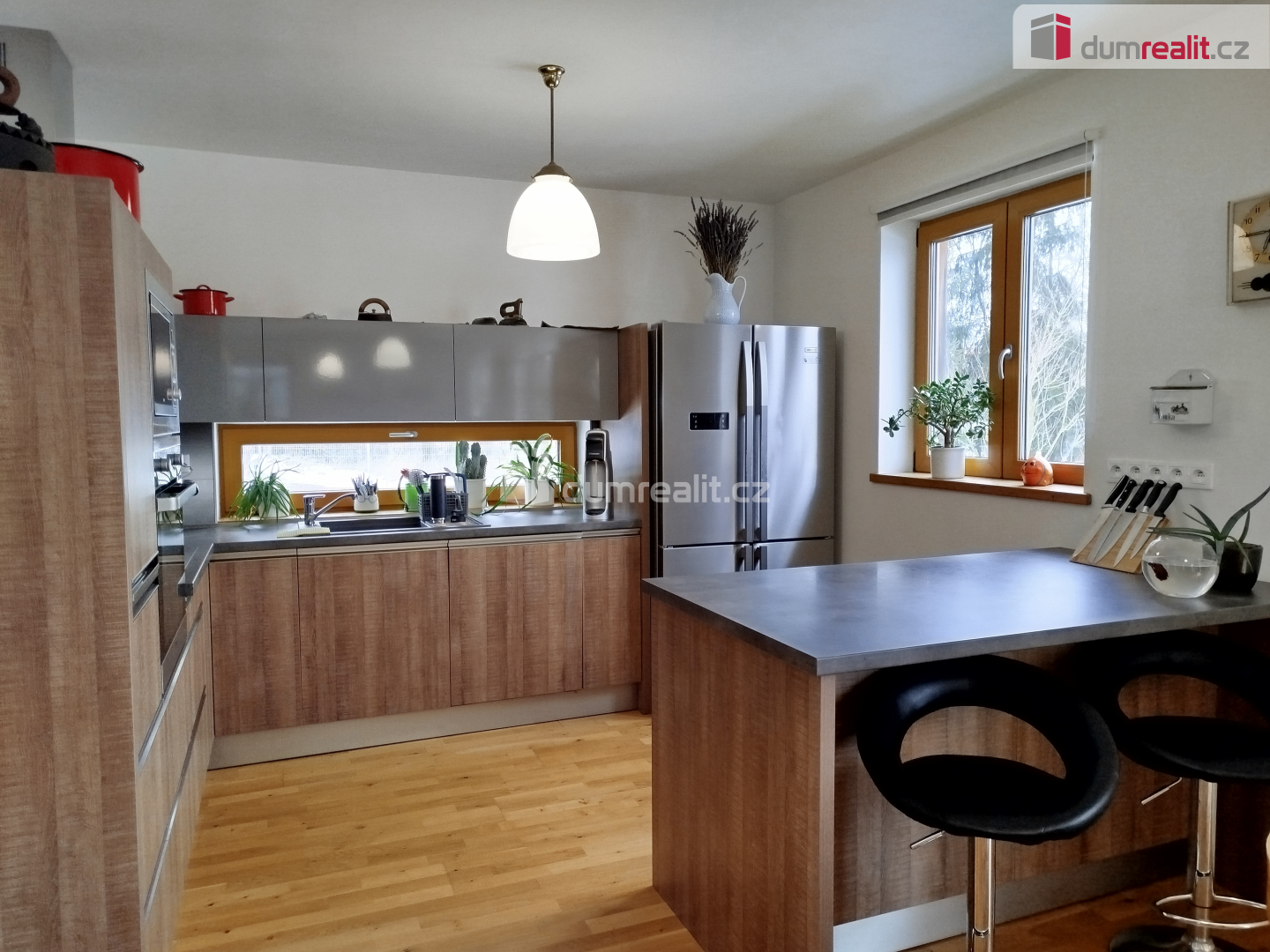 Naše společnost Vám zprostředkuje prodej dvoupodlažního rodinného domu (dřevostavby) v podkrušnohorském městě Ostrov, místní části Vykmanov, 15 km od Karlových Varů. Dům o velikosti 5+kk (zast. plocha cca 134 m², podlahová plocha domu cca 156 m², podlahová plocha dílny cca 42 m²) je postaven na rovinatém pozemku o výměře 1.746 m² a jeho orientace umožňuje sluneční svit od východu po západ. Hlavní stavba je spojena s dílnou, která má samostatné vstupy a vjezd a lze ji využít také jako garáž. V přízemí je vstup do domu se zádveřím, chodbou a schodištěm do patra, technická místnost, koupelna s WC, pokoj, kuchyňský kout s jídelnou a obývací pokoj s krbovými kamny. Z obývacího pokoje lze vyjít přímo na venkovní dřevěnou terasu, která je v západní části zastřešena. Hlavní vstup do domu je chráněn zastřešenou přístavbou. V 1. NP je chodba, samostatná koupelna, samostatné WC, komora a tři pokoje, z nichž dva jsou oddělené dřevěnými posuvnými dveřmi, takže se dají propojit v jeden velký. Veškerá okna v celém objektu jsou plastová s trojskly, v horním patře mají některá okna venkovní mechanické žaluzie. Součástí vybavení domu je technologické zázemí (tepelné čerpadlo, bojler) a kuchyňská linka se spotřebiči (indukční deska, el. trouba, vestavěná mikrovlnná trouba, myčka, digestoř). Vytápění domu a ohřev teplé vody je zajištěn tepelným čerpadlem, podlahové topení je v celém přízemí (včetně dílny) a všech koupelnách a WC. V obytných pokojích jsou radiátory. Druhým zdrojem tepla jsou krbová kamna v obývacím pokoji. Dodávka studené vody je z veřejného vodovodního řádu, kanalizace je napojena do domovní čistírny odpadních vod (DČOV). V současné době probíhají přípravy k realizaci napojení do obecního veřejného kanalizačního řádu a rekonstrukce příjezdové komunikace. Na zahradě je vlastní studna pro zalévání zahrady. Parkování je možné na pozemku nebo před vjezdem k domu. Stavba je nízkoenergetická a dle platné legislativy je zařazena do energetické třídy B. Tuto nemovitost lze hradit hypotečním úvěrem, který Vám rádi pomůžeme vyřídit. Ev. číslo: 650263.