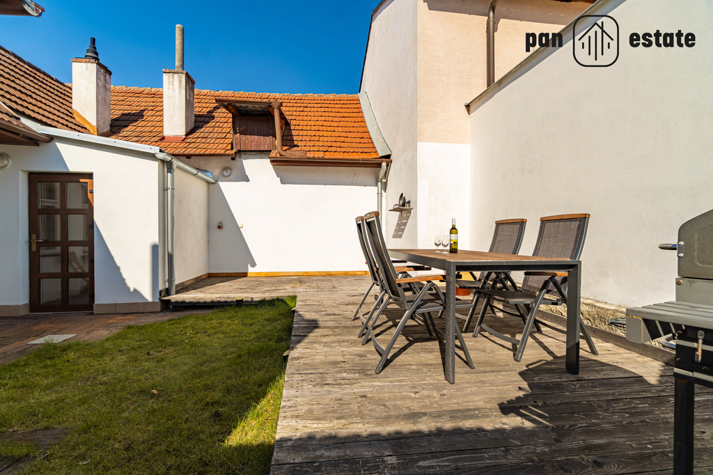 Velmi příjemným benefitem je i venkovní zázemí. Na terase je připraveno posezení, gril a sezónně využívaná vířivka. Součástí domu je také vkusná menší zahrádka, která nabízí soukromí i odpočinek bez zbytečně vysokých nároků na údržbu. Parkování je možné vybudovat přímo před domem nebo využít parkování přímo na ulici. K domu náleží i sklep, ten však aktuálně není využíván. Nízké provozní náklady pomáhá držet kondenzační plynový kotel.