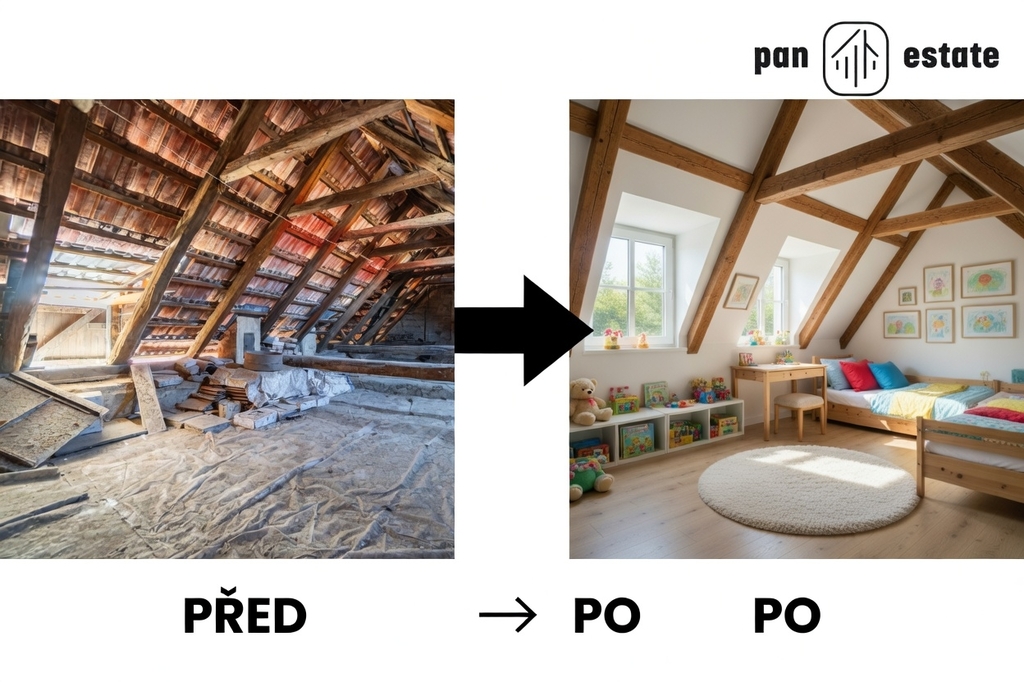 Velkou přidanou hodnotou této nemovitosti je prostorné podkroví, které nabízí možnost budoucího rozšíření. Po stavební úpravě a zvednutí může vzniknout další obytné podlaží a užitná plocha domu se tak může výrazně navýšit. Vizualizace možného řešení je součástí inzerce.