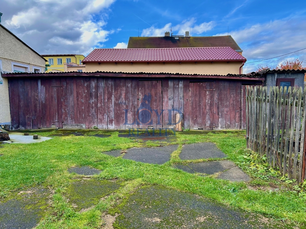 Na rozlehlém pozemku najdete velkou předzahrádku, kolny, kotec pro psa i ovocný sad.