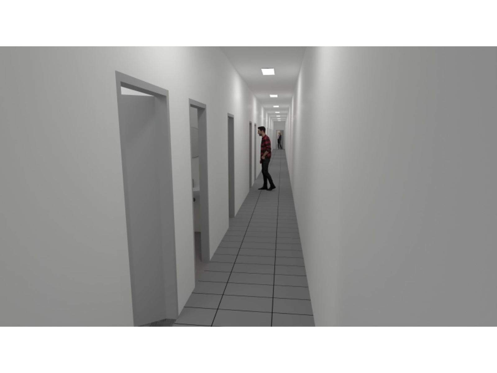 Světlá výška haly 10,8 m. Nosnost podlah 5 t/m2.