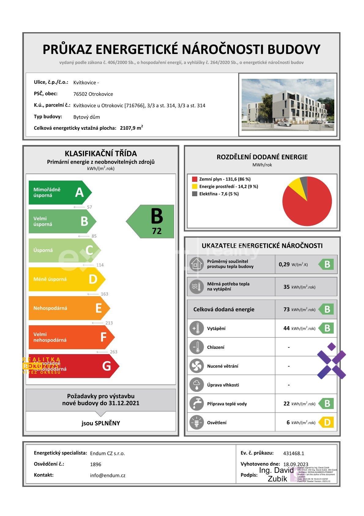 Dagmar Machová & Explicit reality Vám nabízí exkluzivní byt 3+kk v novostavbě bytového domu, v jedinečné stavbě ,,Rezidence Kvítkovice" v předměstí Zlína - Kvítkovice u Otrokovic.