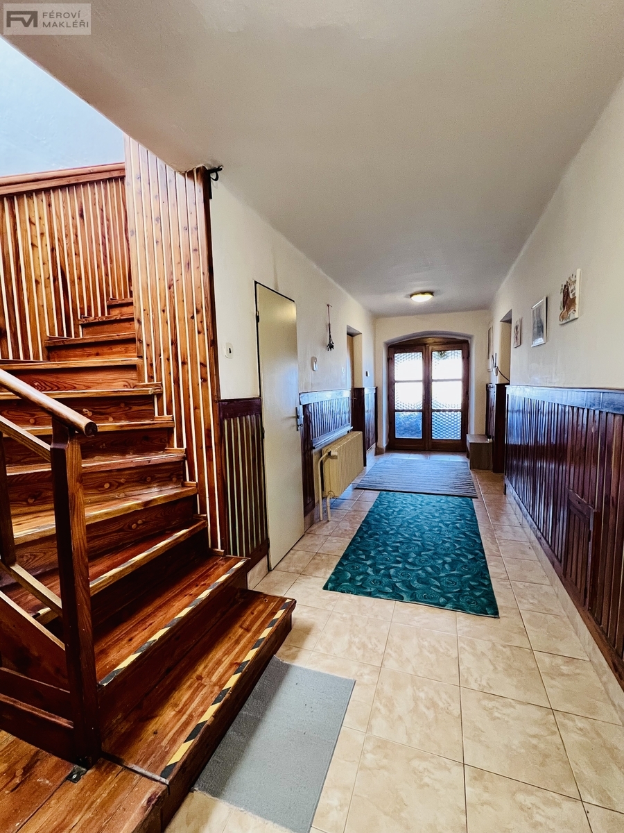 Dům má dvě podlaží, užitnou plochu cca 250m2 a má dispoziční řešení 5+2, tzn. 5 pokojů a na každém ze dvou pater najdete vlastní kuchyň a prostornou koupelnu, v předsíni je navíc další WC.