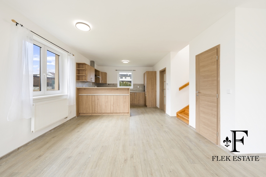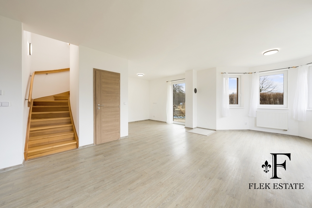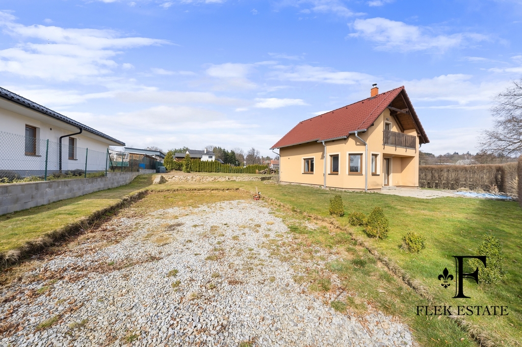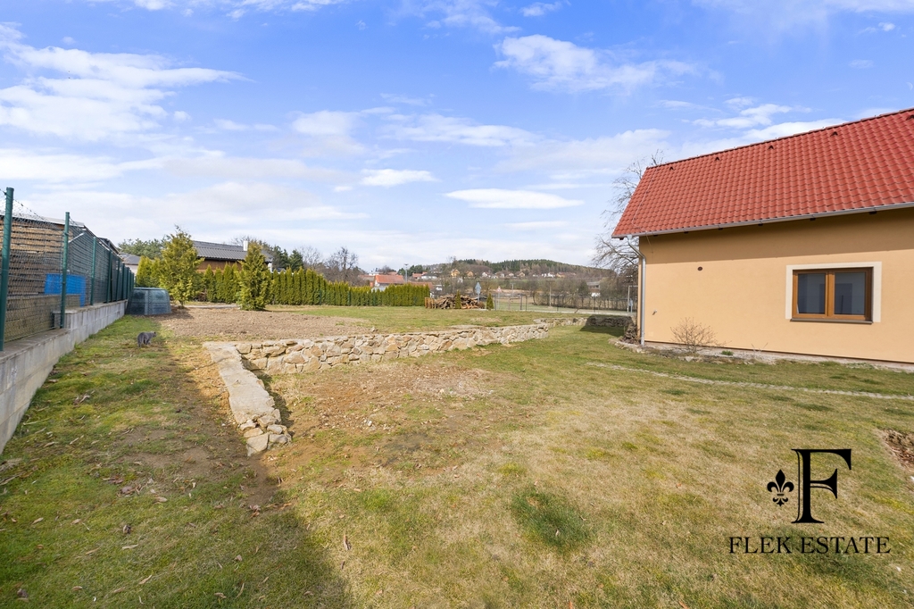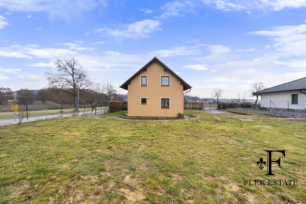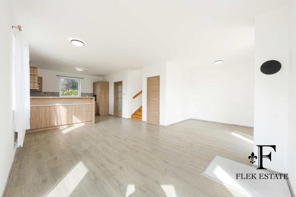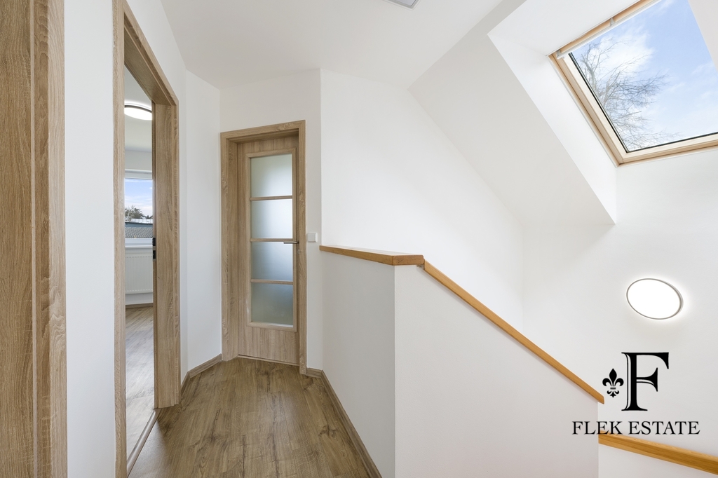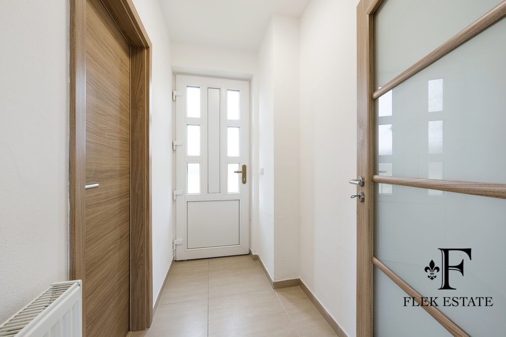 Dům prošel rekonstrukcí a je připraven k okamžitému bydlení. Velkou výhodou je přirozené propojení interiéru se zahradou – z obývacího pokoje vstupujete přímo ven, zatímco z kuchyně máte příjemný výhled do zeleně. V patře se nachází dva pokoje se vstupem na balkon.