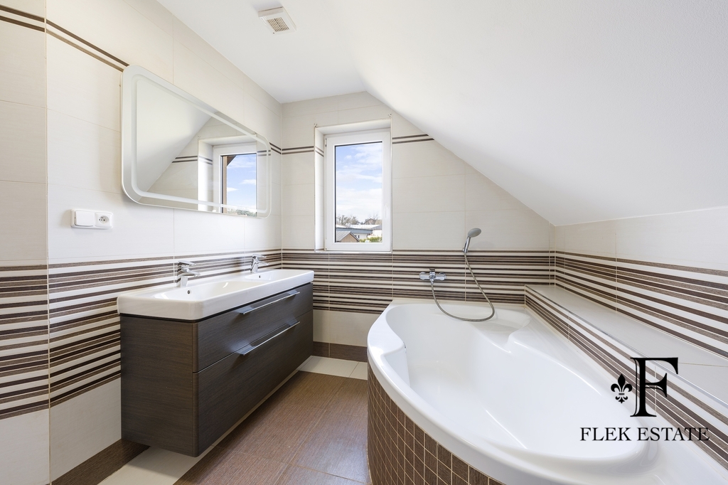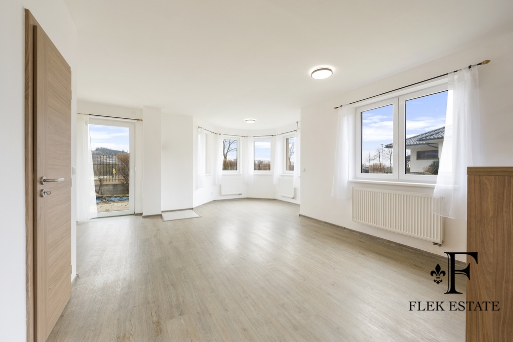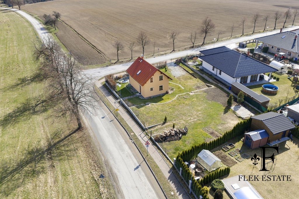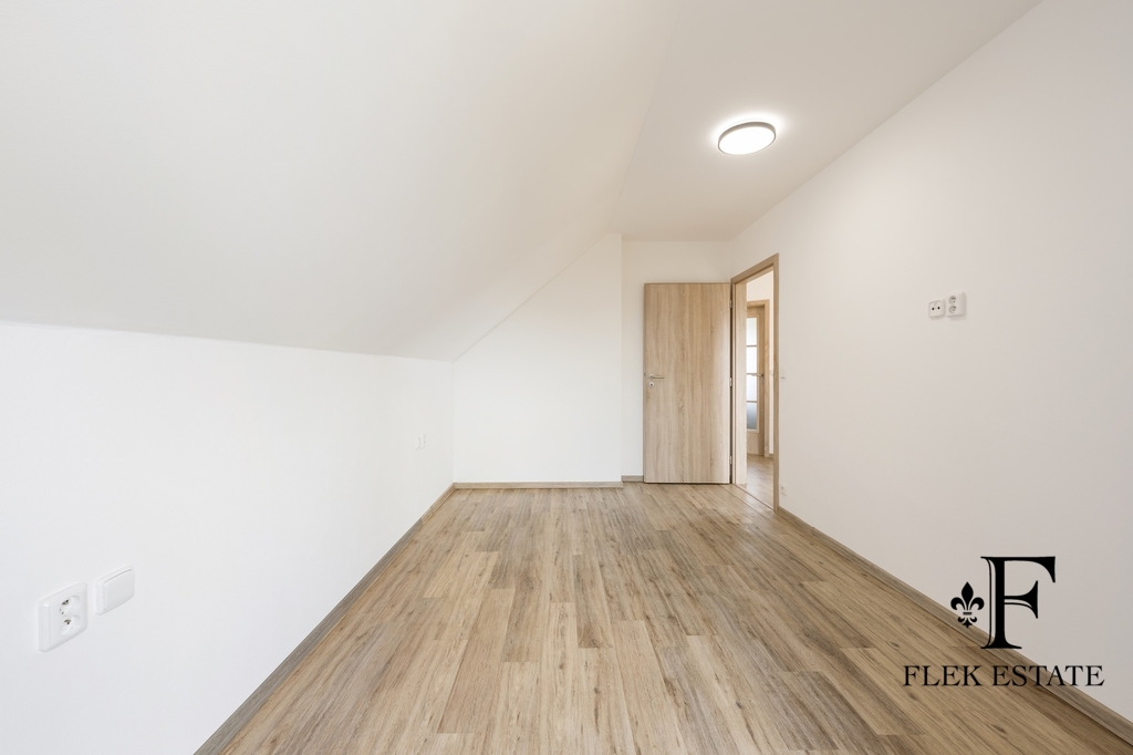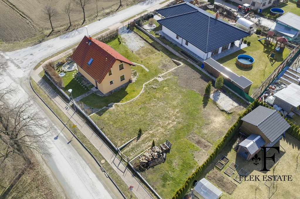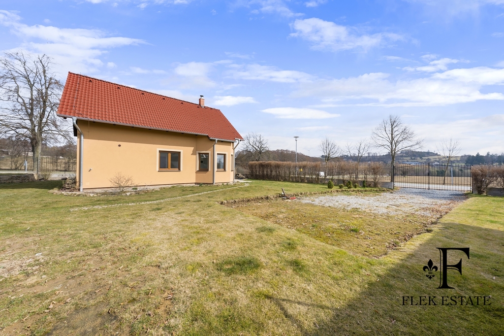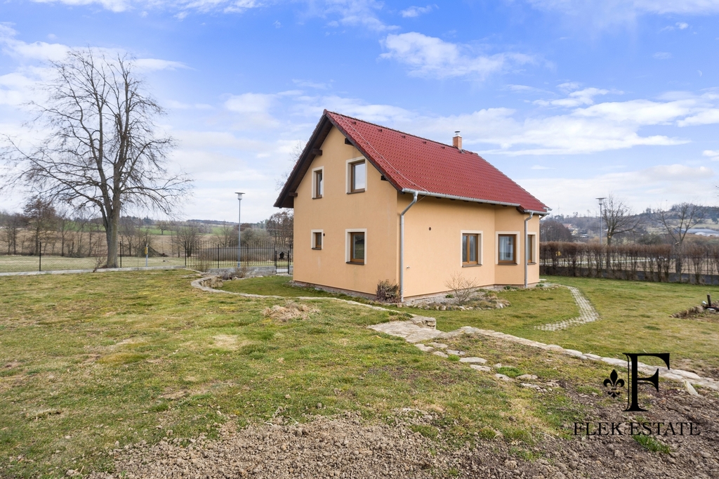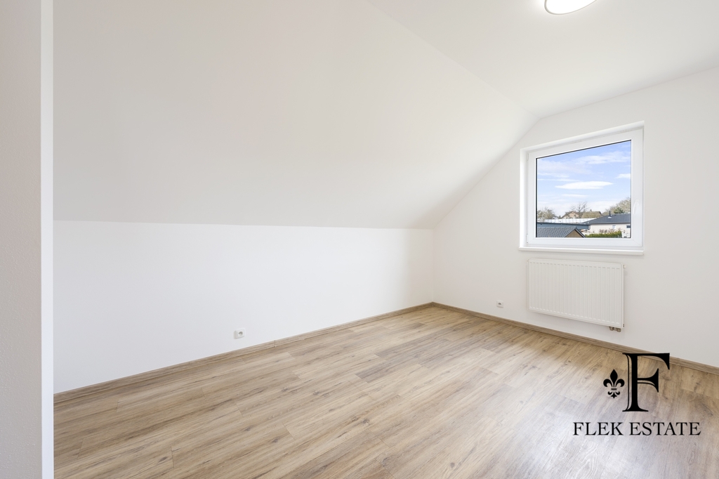 Dům prošel rekonstrukcí a je připraven k okamžitému bydlení. Velkou výhodou je přirozené propojení interiéru se zahradou – z obývacího pokoje vstupujete přímo ven, zatímco z kuchyně máte příjemný výhled do zeleně. V patře se nachází dva pokoje se vstupem na balkon.