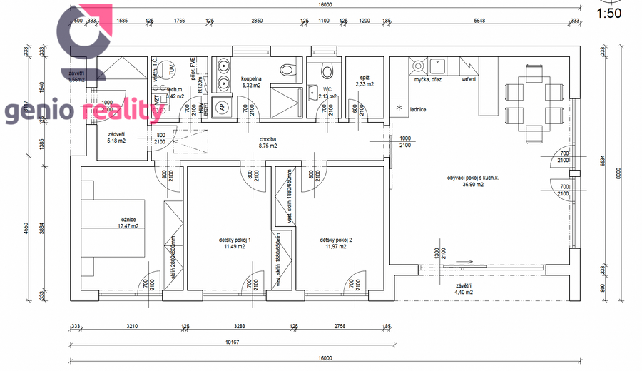 Úpravy dispozic interiéru a vybavení dle vašich preferencí jsou možné