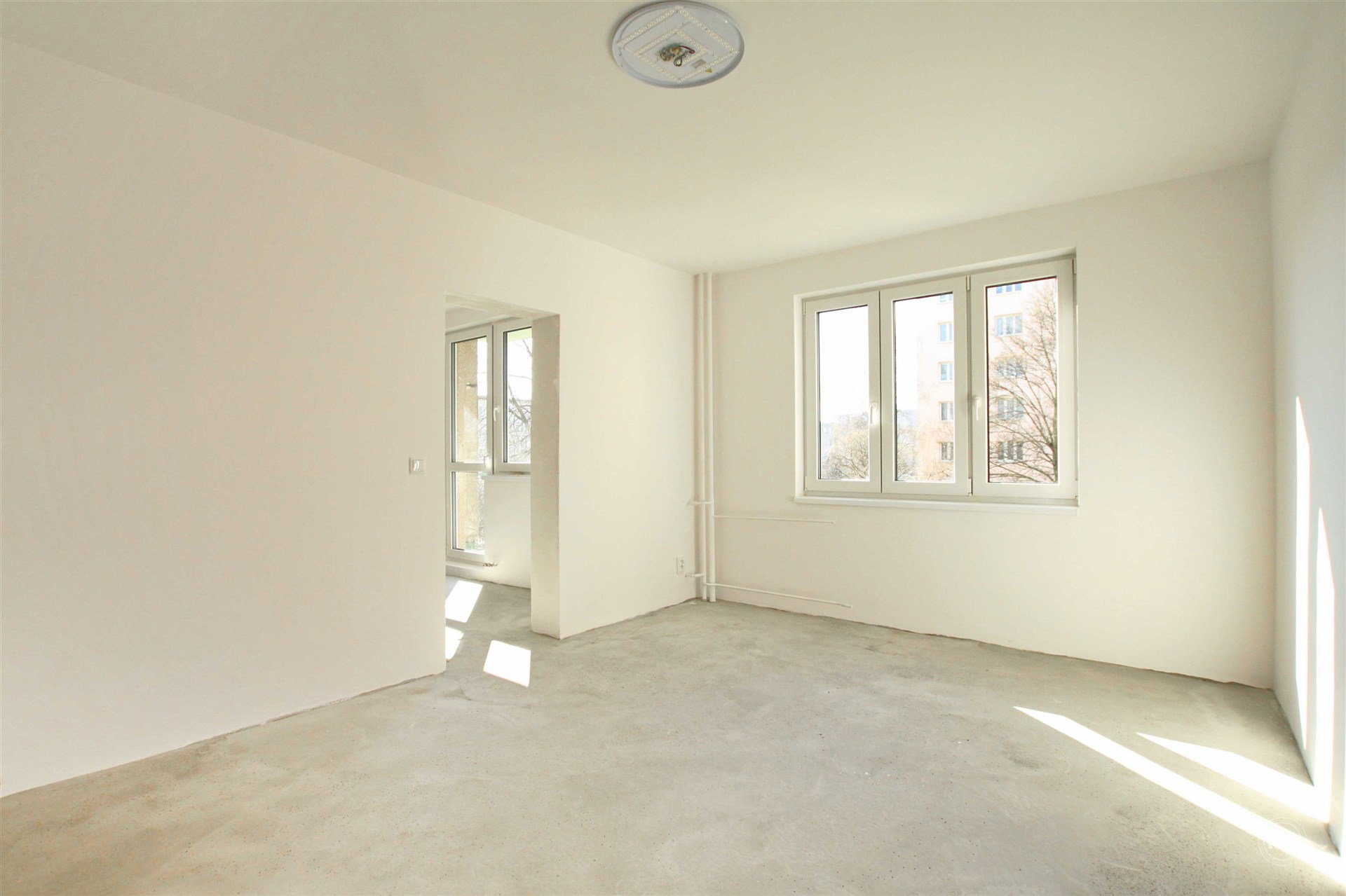 Všechna okna jsou orientována na jižní stranu. Byt je tak po celý den zásoben slunečním svitem a dokonalou světlostí (viz. fotogalerie).