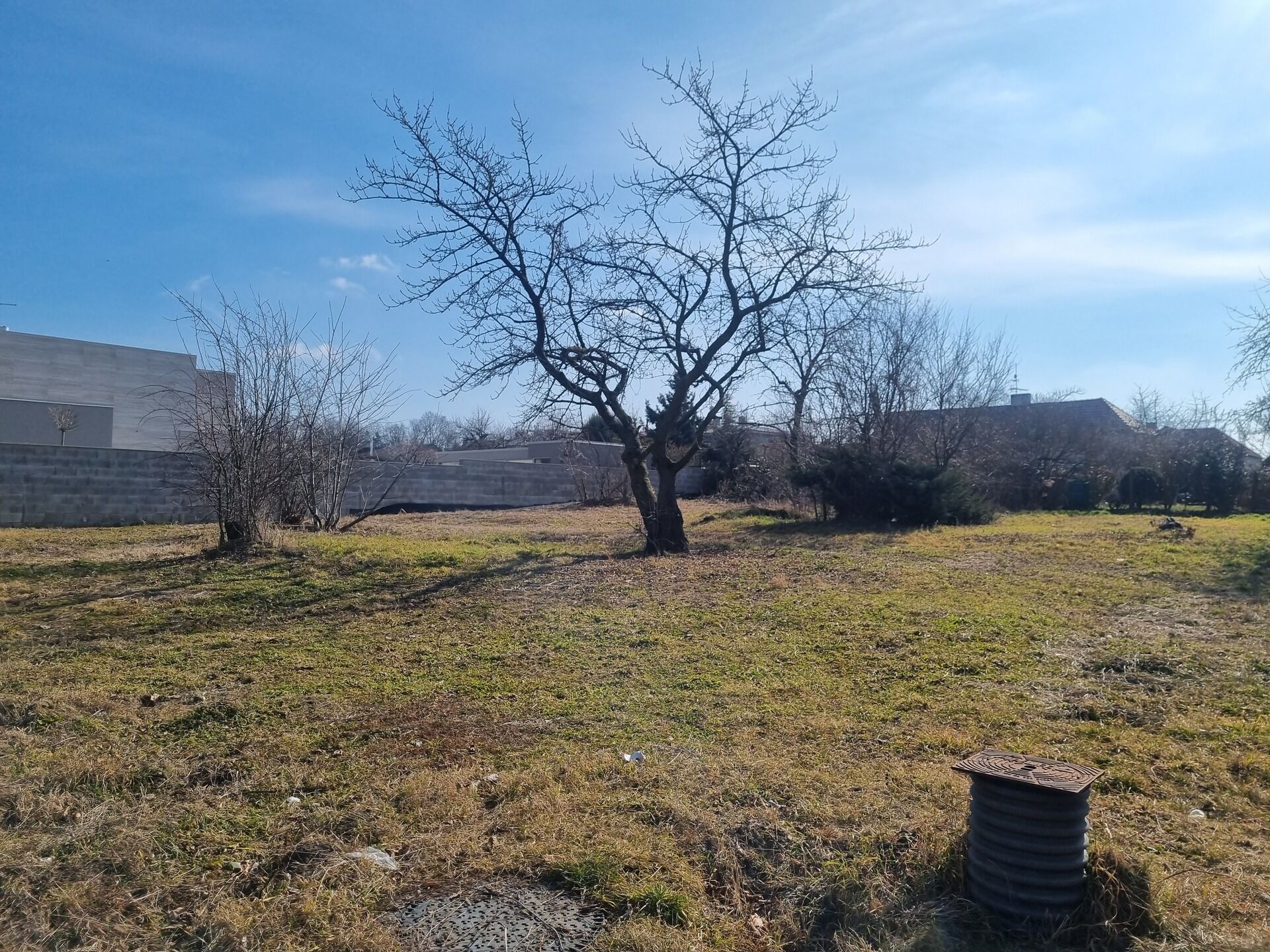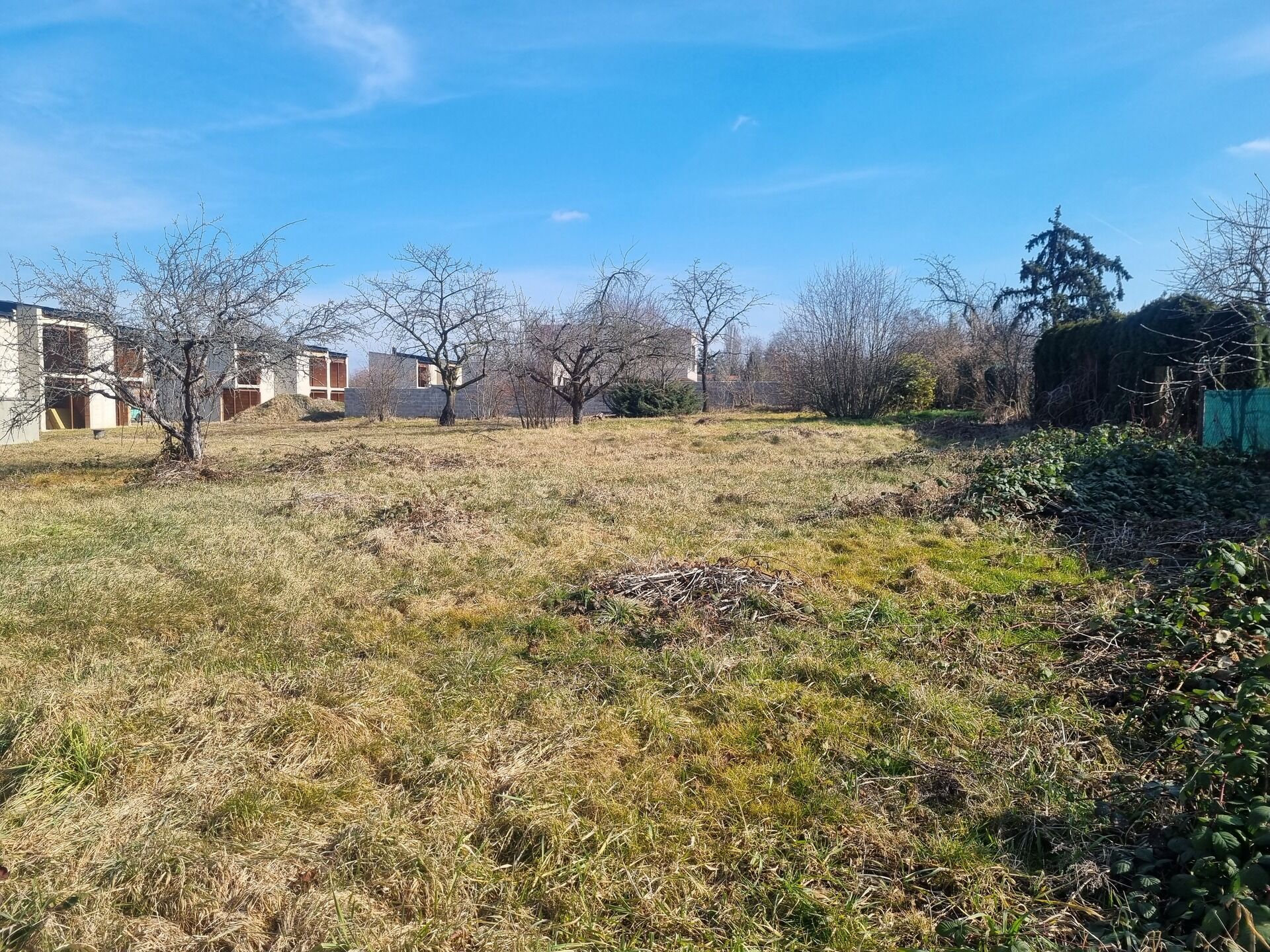 Pozemek má kompletní inženýrské sítě – kanalizační a vodovodní přípojka zakončená šachtou na pozemku, elektropřípojka s elektroměrem a zaplaceným podílem u ČEZ. Je zde vydané územní rozhodnutí na variabilní rodinné vila domy s plochou střechou o maximální zastavěné ploše 230 m². Územní rozhodnutí je trvale platné, protože dva domy již byly realizovány.
