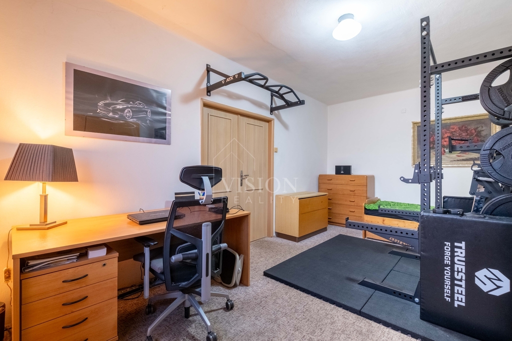 Byt disponuje prostornou zahradou, která je ideální pro rodinné hry a venkovní oslavy. Pro pořádání aktivit s dětmi je zde také možnost zřídit hernu nebo dětský pokoj, což přidává na hodnotě této nemovitosti. Parkování je zajištěno ve dvoře přímo u domu, což je další výhoda pro rodiny s více automobily.