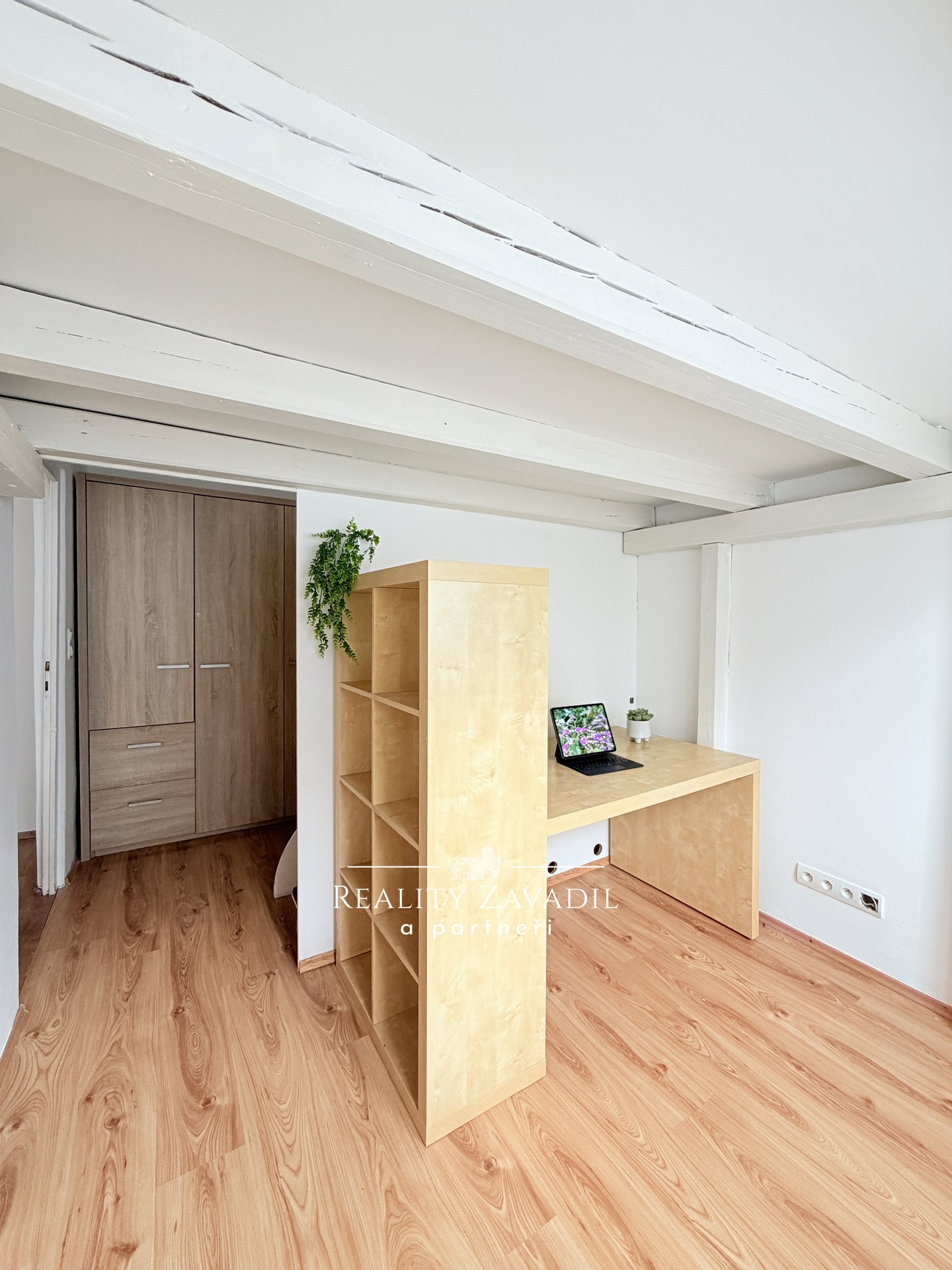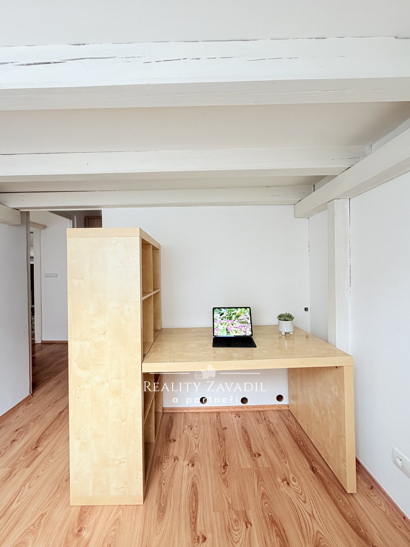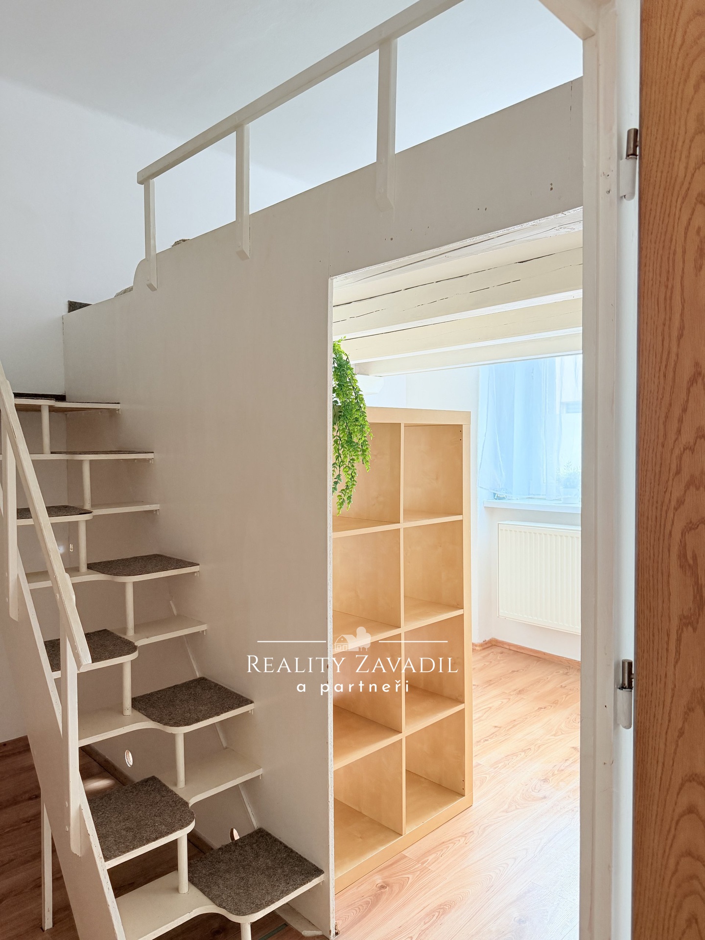 Byt nabízí netradiční, ale velmi funkční uspořádání, ideální například pro mladý pár, rodinu nebo jako investiční příležitost k pronájmu.