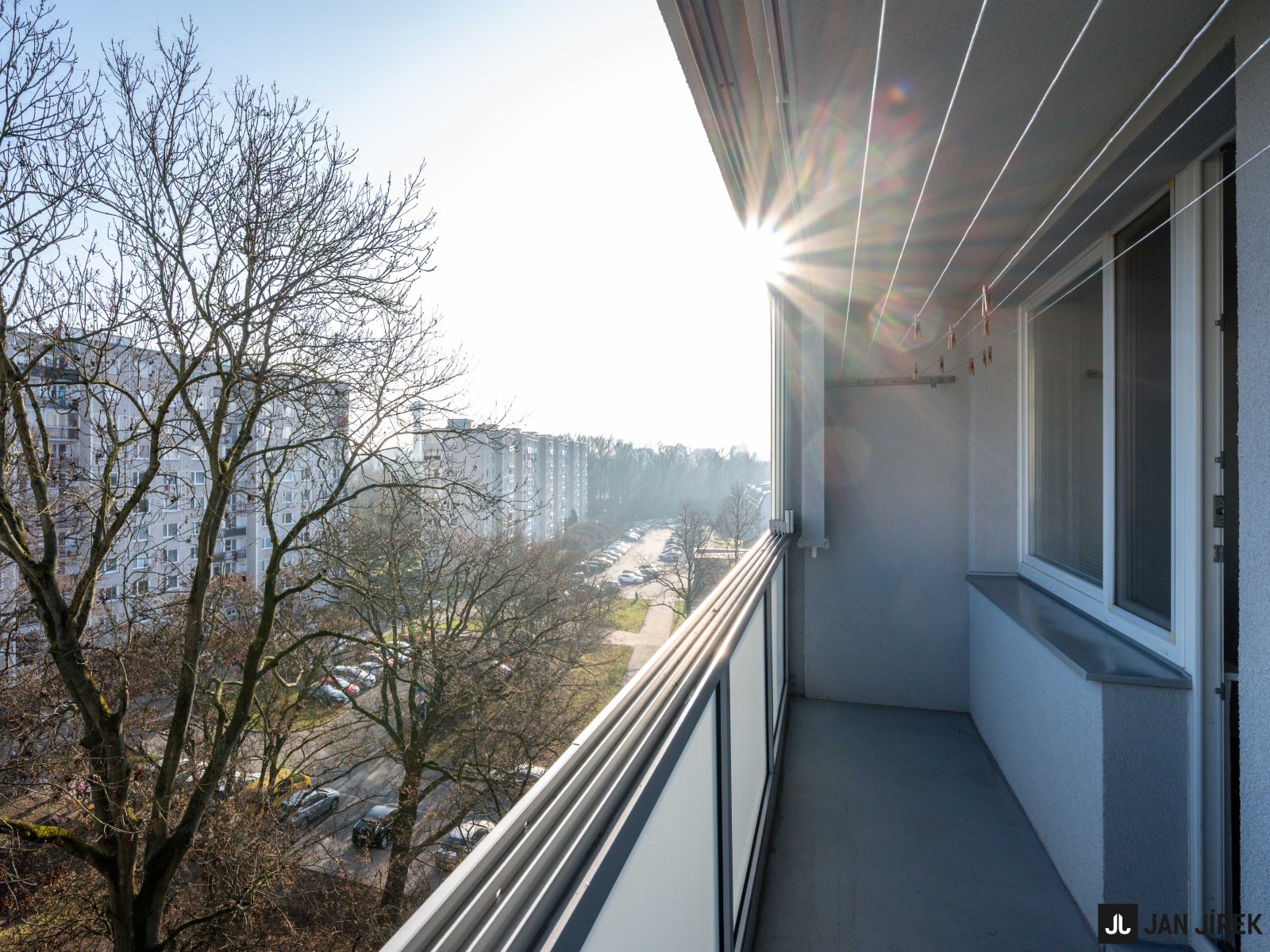 Bytová jednotka o celkové ploše 79,8 m² se nachází v 6. patře (7.NP) revitalizovaného panelového domu se dvěma výtahy. Byt, který prošel v roce 2006 rekonstrukcí, je velmi dobře dispozičně řešen – všechny místnosti jsou přístupné z chodby.