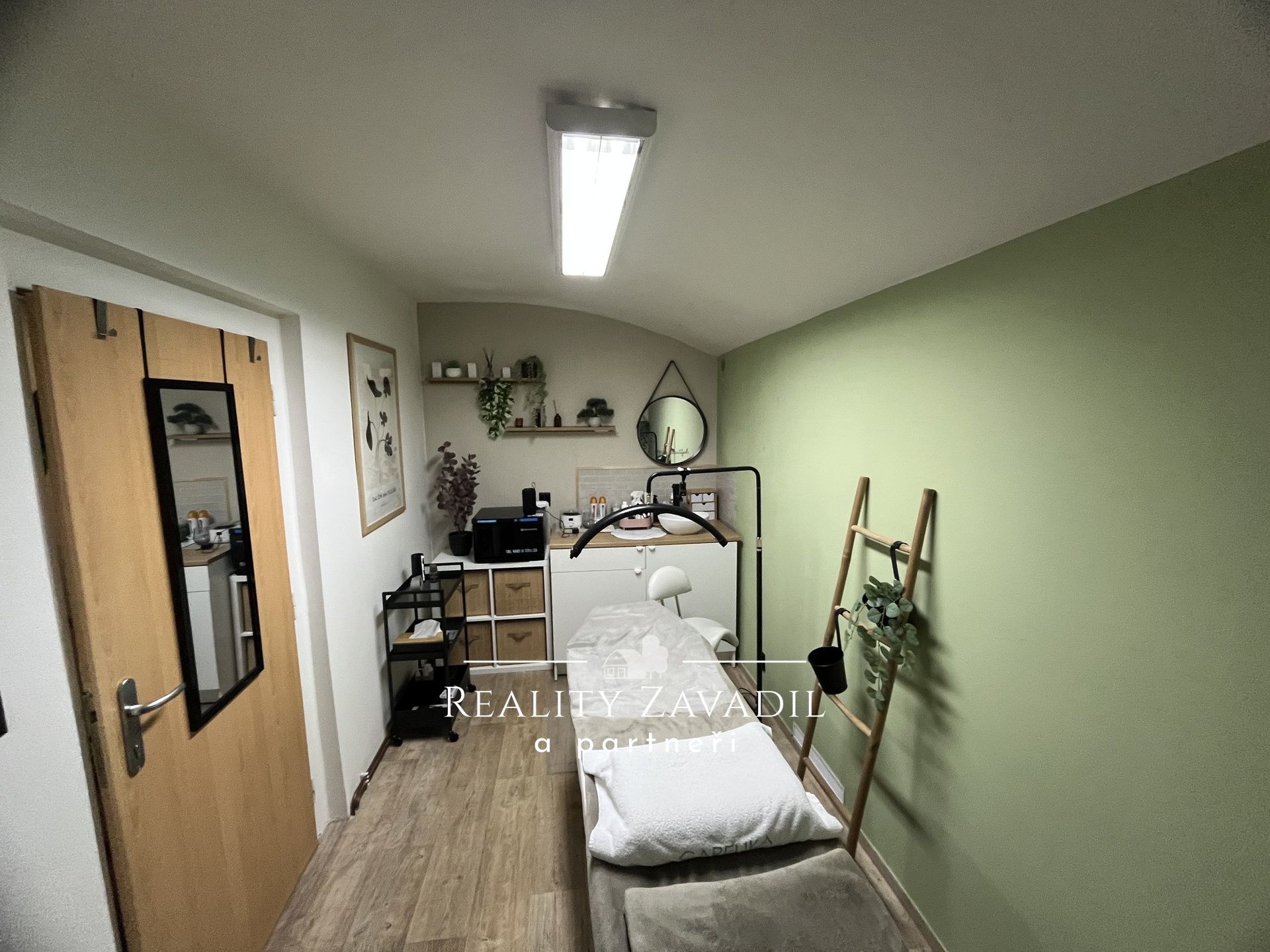 V 1.NP jsou 3 nebytové prostory, (kosmetička, kadeřnictví a kancelář) o výměře cca 120m2. Součástí přízemí je společná chodba se zadním vstupem do dvora , kde je možnost parkování až pro 9 aut, vjezd z ulice Na Třísle.