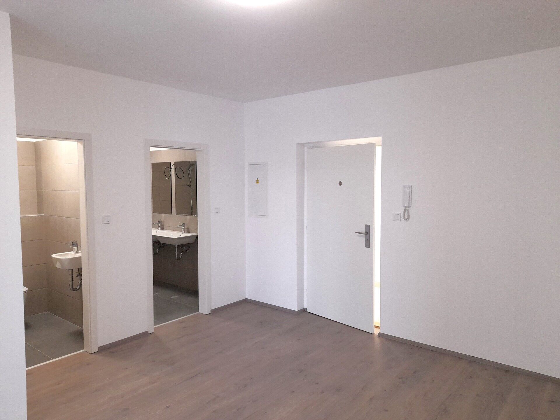Do bytu se vstupuje přes prostornou předsíň, která má výměru 16 m2 a z které je vstup do všech místností bytu. Byt se skládá z příjemně velkého a dobře dispozičně řešeného obývacího pokoje s kuchyňským koutem (kuchyňská linka není součástí ceny a vybavení bytu) a ze dvou samostatných ložnic, koupelny s vanou, samostatného WC a prostorné šatny. Ze všech obytných místností je vstup přes velké francouzské okno na prostornou terasu, která je situována na jih a je z ní hezký výhled do okolí a na zeleň. Na podlahách jsou položeny laminátové plovoucí podlahy a dlažba, instalovány jsou obložkové zárubně a kvalitní vnitřní dveře. Okna jsou plastová s vnitřními hliníkovými žaluziemi, vytápění a ohřev TUV je řešen dálkově - horkovodem. V koupelně je ve standardním provedení el. podlahové topení.