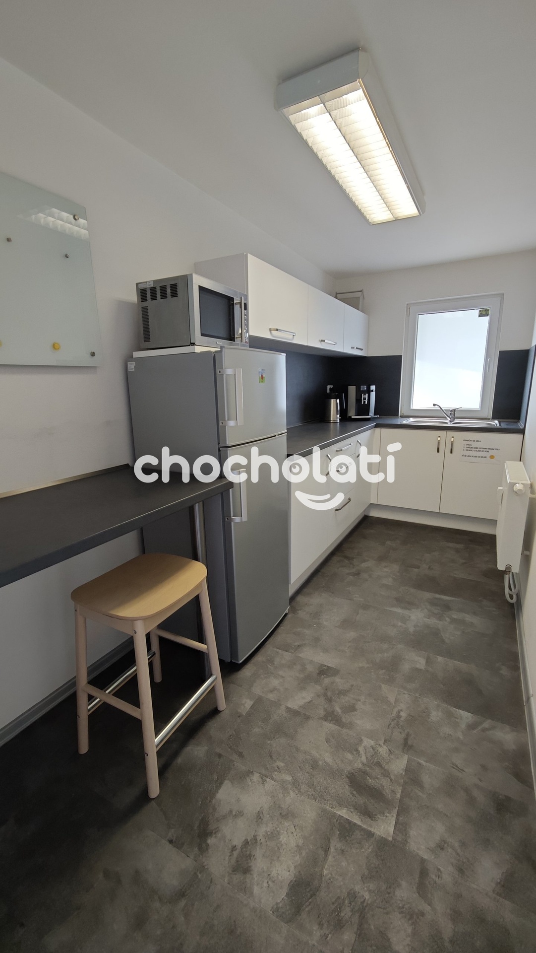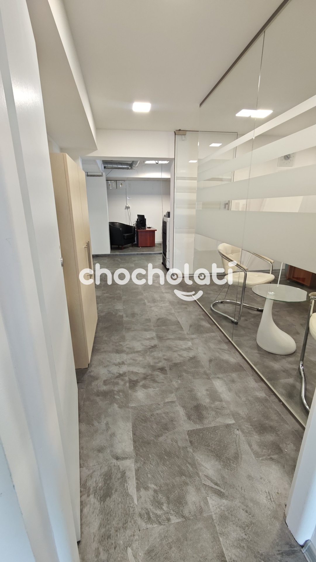 První část je umístěna v přízemí bytového domu (celková výměra 103 m2) a nabízí možnost případné úpravy pro účely bydlení. V současné době je prostor rozdělený na 3 kanceláře, chodbu, kuchyň, halu a sociální zařízení.