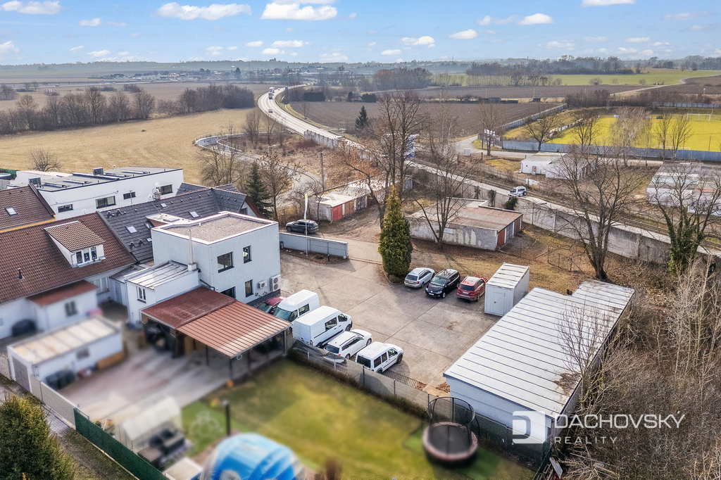 Součástí areálu jsou také skladovací prostory, parkovací místa přímo na vlastním pozemku a garáž.