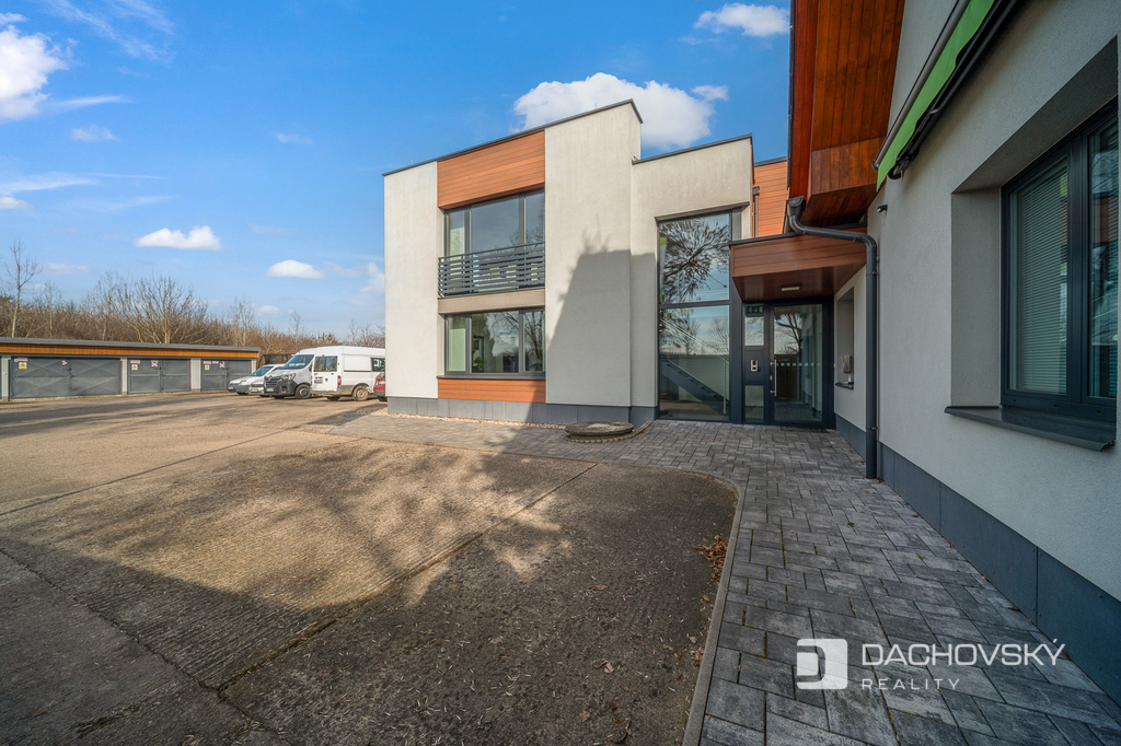 Nabízíme jedinečnou investiční příležitost – plně funkční administrativní areál využívaný jako firemní sídlo, nacházející se v klidné části města Pardubice - Nové Jesenčany. Areál je situován na oploceném pozemku o celkové výměře 1 014 m². Administrativní komplex vznikl rekonstrukcí původního domu a moderní architektonickou přístavbou, které společně vytvářejí funkční celek ve tvaru písmene L. Kombinace tradičních materiálů, jako je dřevo a omítka, spolu se současnými technologiemi dodává budově reprezentativní charakter.