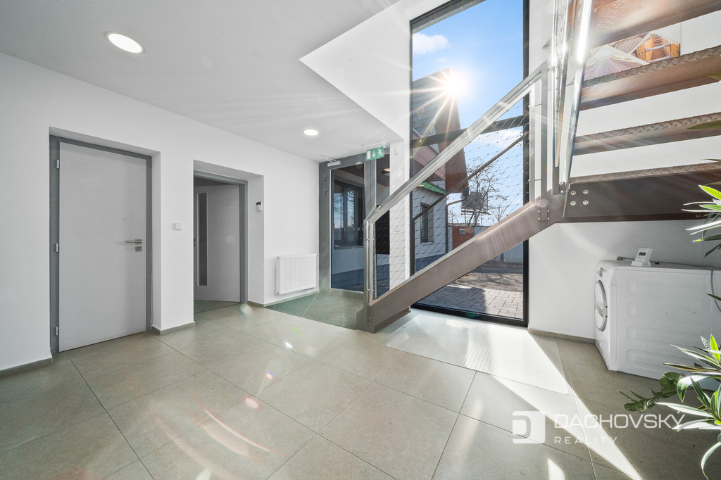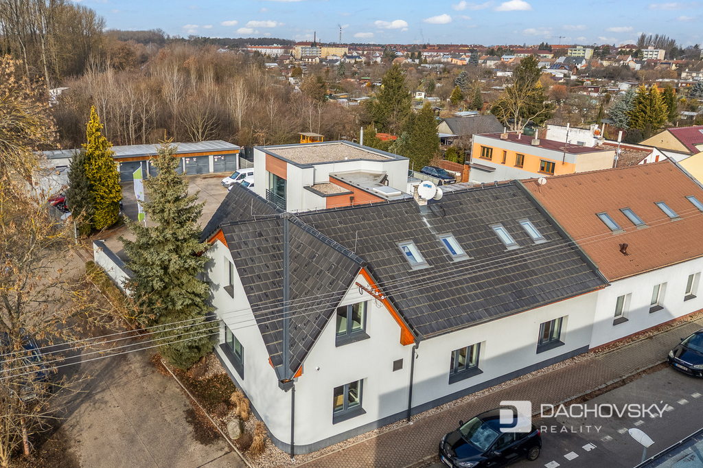 Nabízíme jedinečnou investiční příležitost – plně funkční administrativní areál využívaný jako firemní sídlo, nacházející se v klidné části města Pardubice - Nové Jesenčany. Areál je situován na oploceném pozemku o celkové výměře 1 014 m². Administrativní komplex vznikl rekonstrukcí původního domu a moderní architektonickou přístavbou, které společně vytvářejí funkční celek ve tvaru písmene L. Kombinace tradičních materiálů, jako je dřevo a omítka, spolu se současnými technologiemi dodává budově reprezentativní charakter.