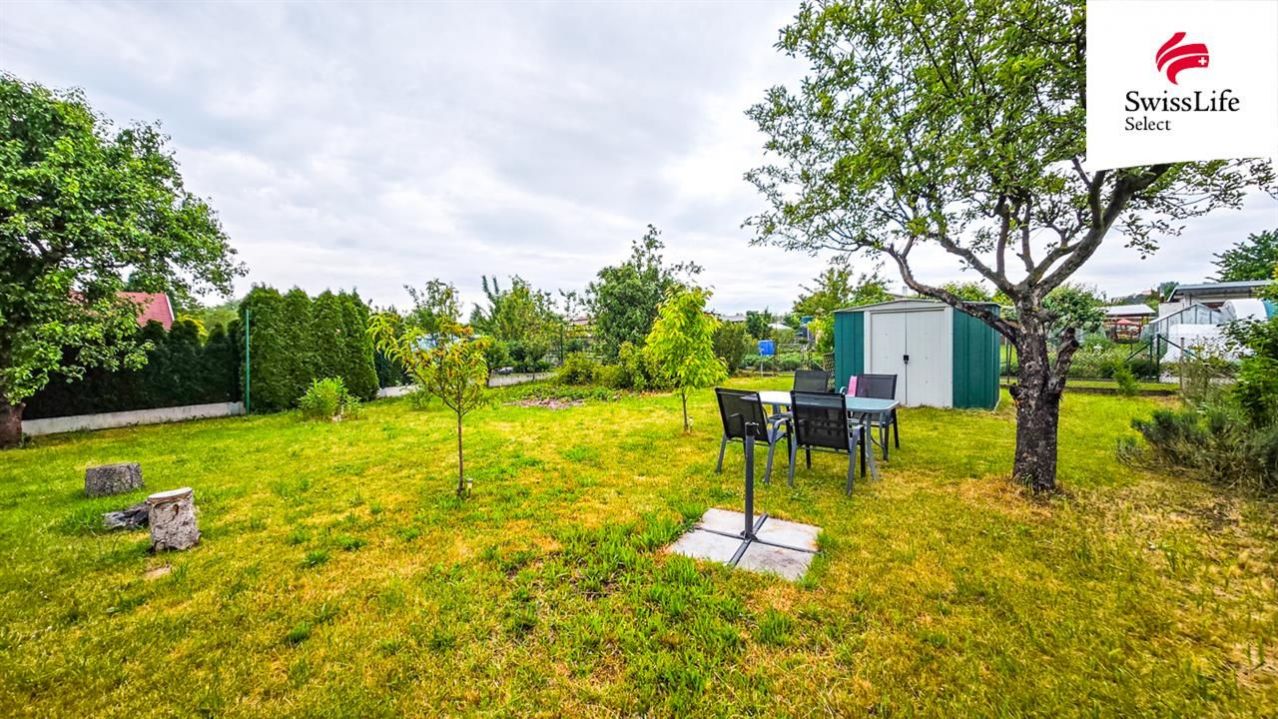 Na pozemku je k dispozici plechový domek pro uložení sekačky na trávu a dalších zahradních potřeb. Velkou výhodou je přívod užitkové vody přímo na pozemek. V zahrádkářské kolonii se nachází zdroj pitné vody, ze kterého je možné vodu odebírat.