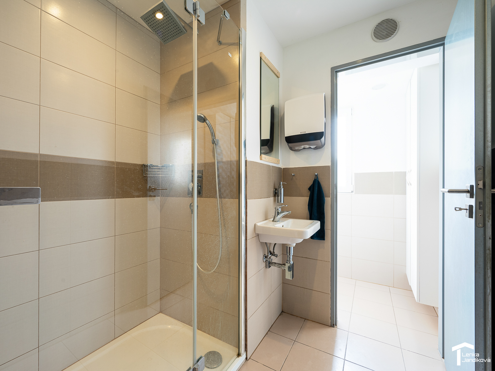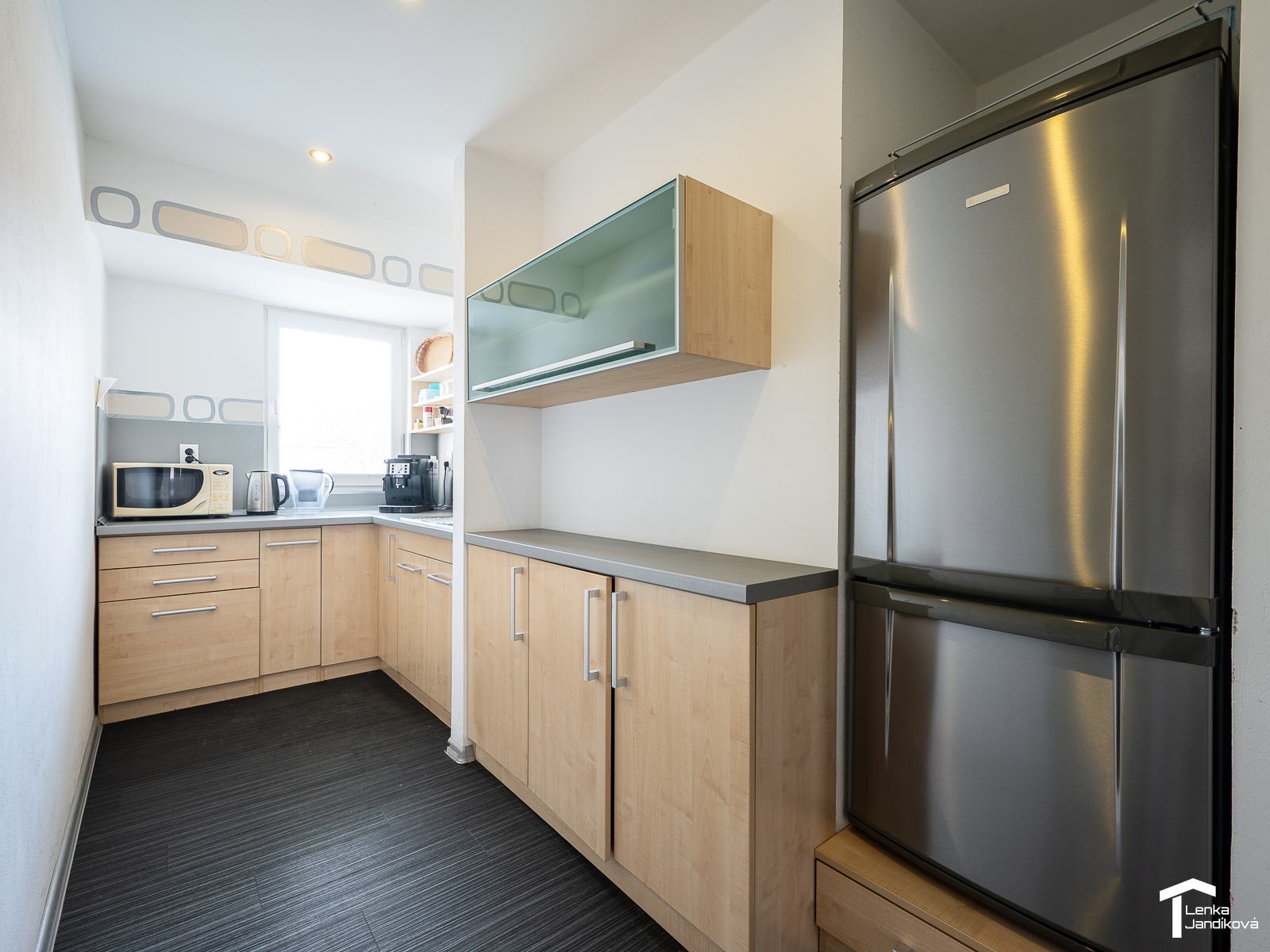 Nebytové prostory o celkové výměře 103m2 jsou umístěné v 1.NP bytového domu a tvoří je 5 místností, kuchyňka a dále sociální zázemí se sprchovým koutem a WC, což zajišťuje komfort pro zaměstnance.