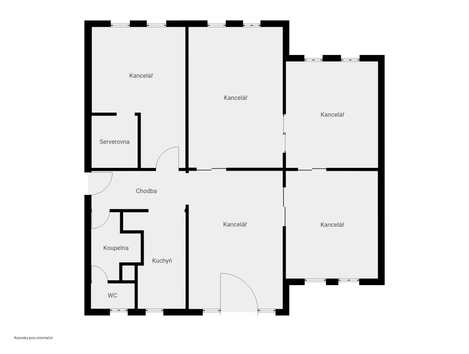 Tyto kanceláře nabízí ideální zázemí pro menší či středně velkou firmu, která je zaměřena na administrativu nebo služby.