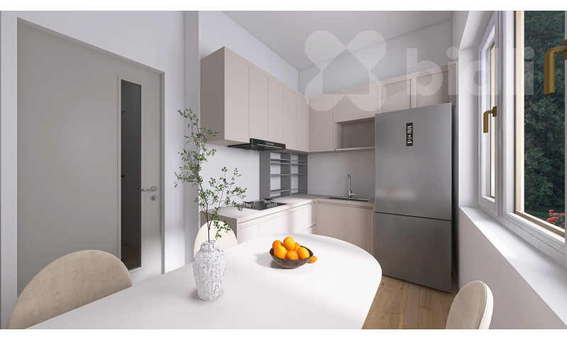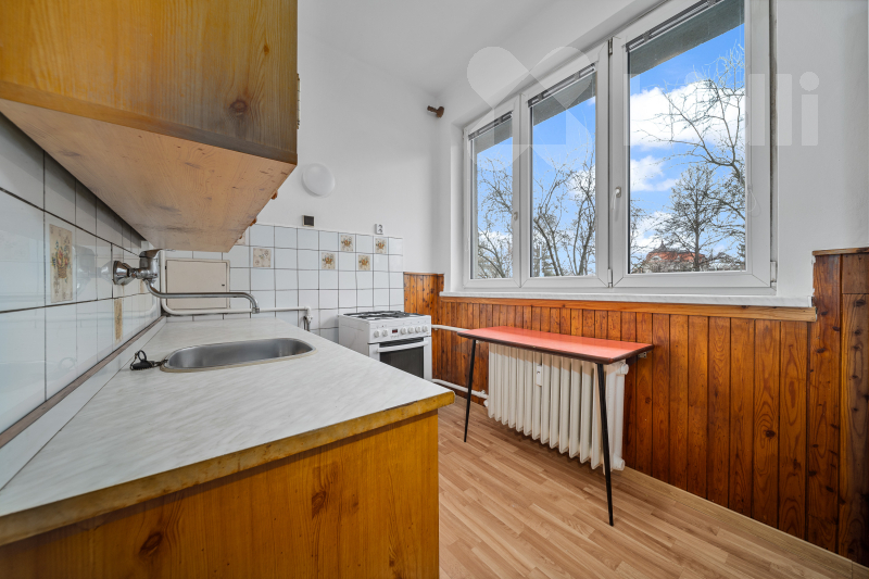 V chodbě dále naleznete praktickou komoru s dostatkem úložného prostoru, samostatné WC a koupelnu s vanou. Hlavní dominantou bytu je vzdušný a prosvětlený obývací pokoj. Hned vedle se nachází samostatná kuchyně. Velkým bonusem je, že příčka mezi kuchyní a obývacím pokojem není nosná - nabízí se tedy možnost jejich propojení a vytvoření moderního, otevřeného prostoru podle vašich představ.