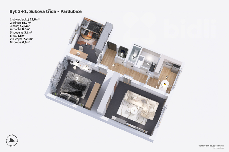 Prostorný byt 3+1 (76 m2) v srdci Pardubic s výhledem do parku