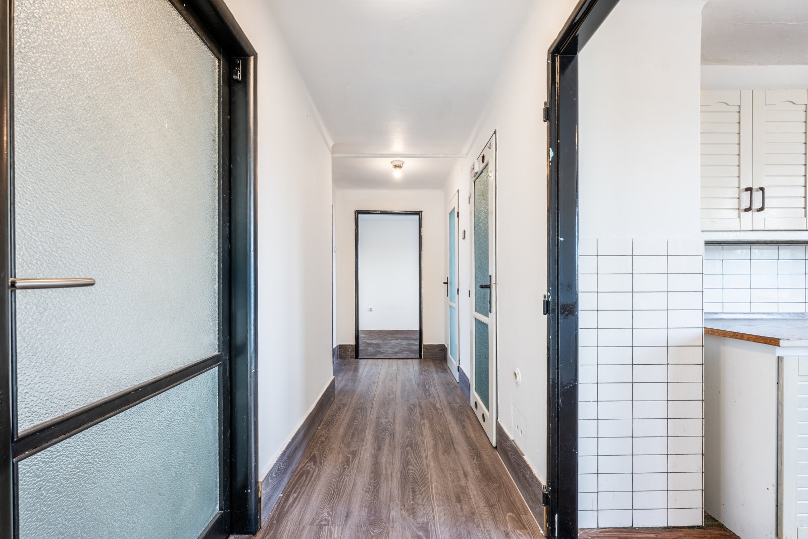 Dispozice zahrnuje tři průchozí pokoje, menší kuchyňský kout, koupelnu a samostatné WC. Jednotka je částečně zmodernizovaná a plně obyvatelná. Do budoucna se počítá s jejím propojením s již započatou přístavbou, čímž vznikne nadstandardní byt s přímým napojením na venkovní prostor.