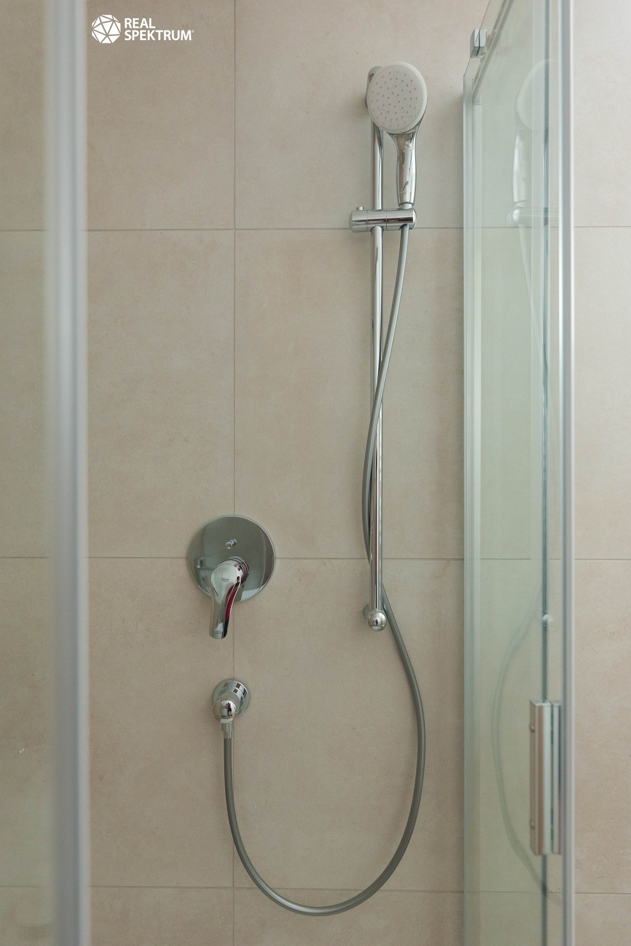 Podlahová plocha bytu činí 65,5 m², terasa má 18,5 m², balkon 4,1 m² a sklepní kóje 4,4 m², celkem tedy 92,5 m². Dispozice zahrnuje vstupní halu, obývací pokoj s kuchyňským koutem a přímým vstupem na terasu, spíž, ložnici s balkonem a koupelnu s WC. Obytný prostor nabízí dostatek místa pro oddělení jídelní, relaxační i pracovní části, terasa rozšiřuje možnost využití bytu v letních měsících a poskytuje prostor pro posezení či venkovní jídelní zónu.