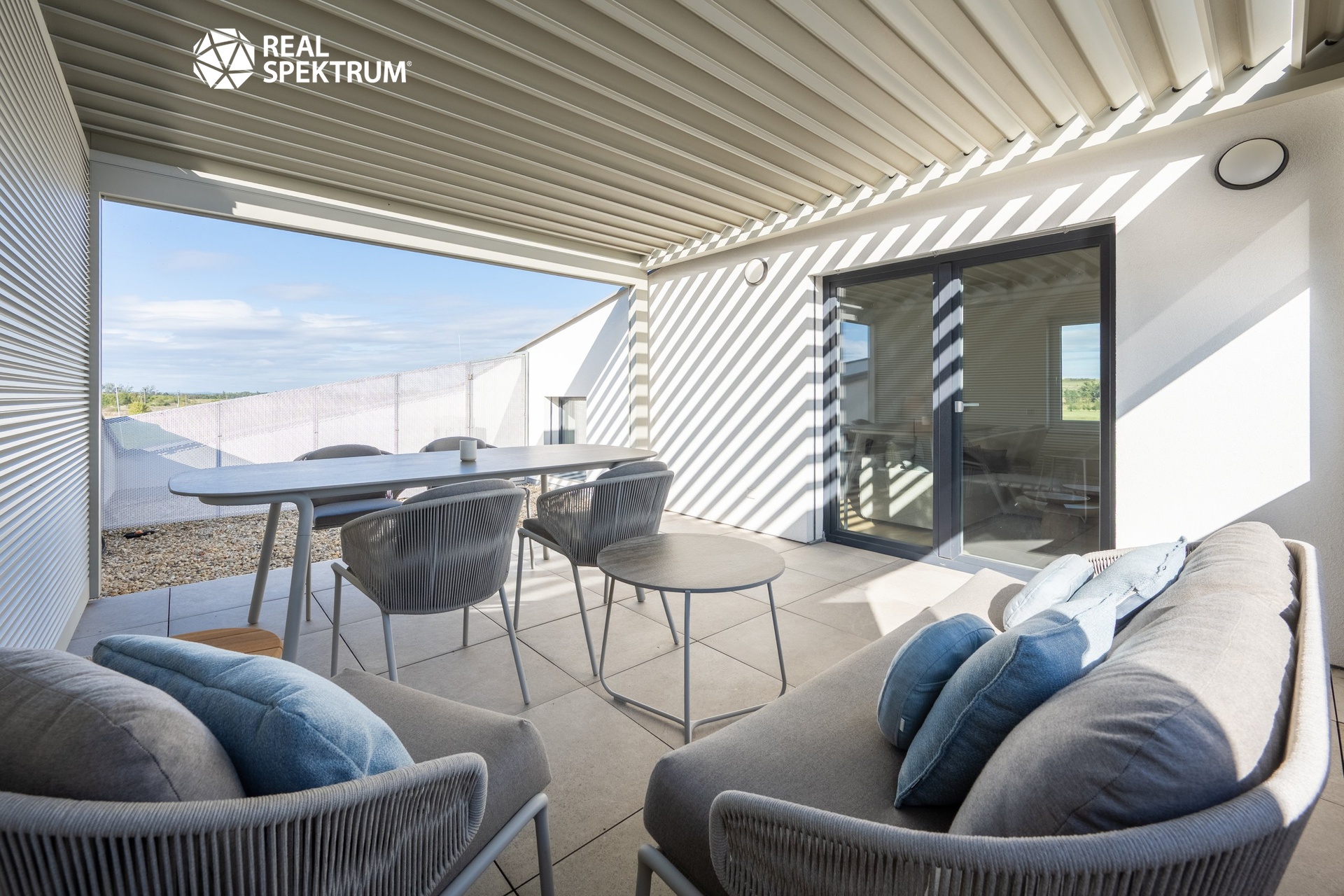 Na terase je instalována špičková bioklimatická pergola, která dodává venkovnímu prostoru styl i praktičnost. K bytu náleží parkovací stání a sklepní kóje.
