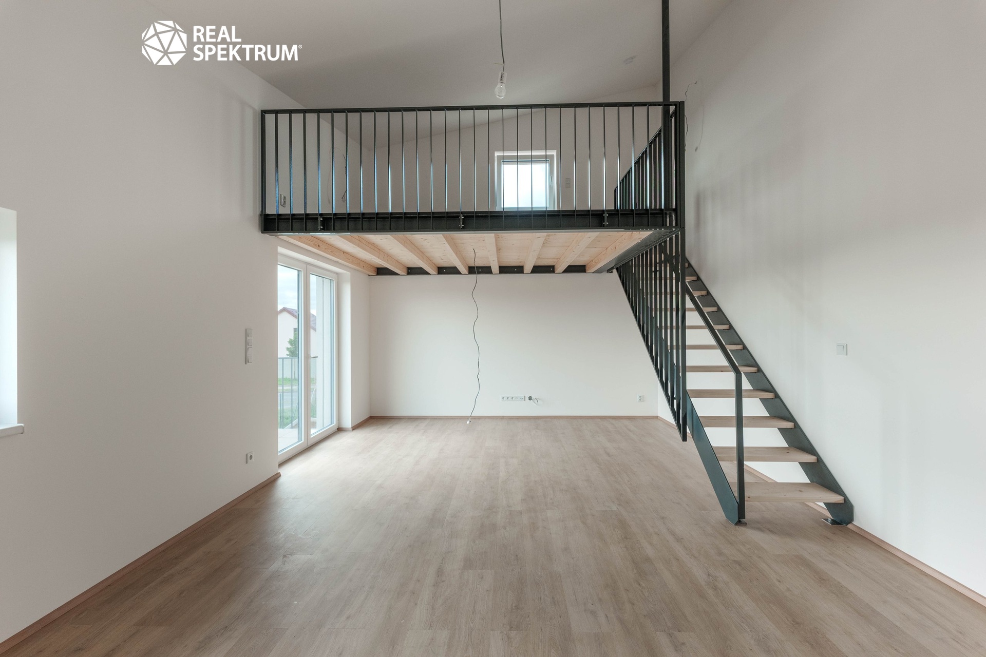 Součástí dispozice je galerie o velikosti 10,3 m², umístěná nad částí obytného prostoru. Lze ji využít jako ložnici, pracovnu nebo zónu pro odpočinek. Díky tomu byt působí velkoryseji než běžné 1+kk a nabízí praktické oddělení denní a noční části bez ztráty prostoru v hlavní místnosti. Okno v obytné části zajišťuje přirozené osvětlení jak spodní části bytu, tak galerie.