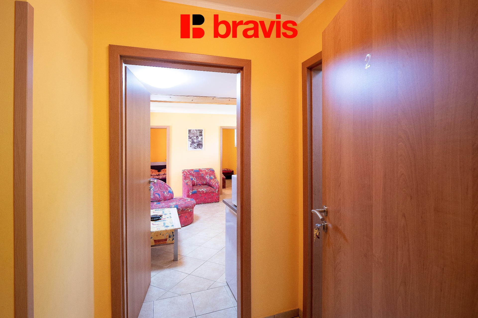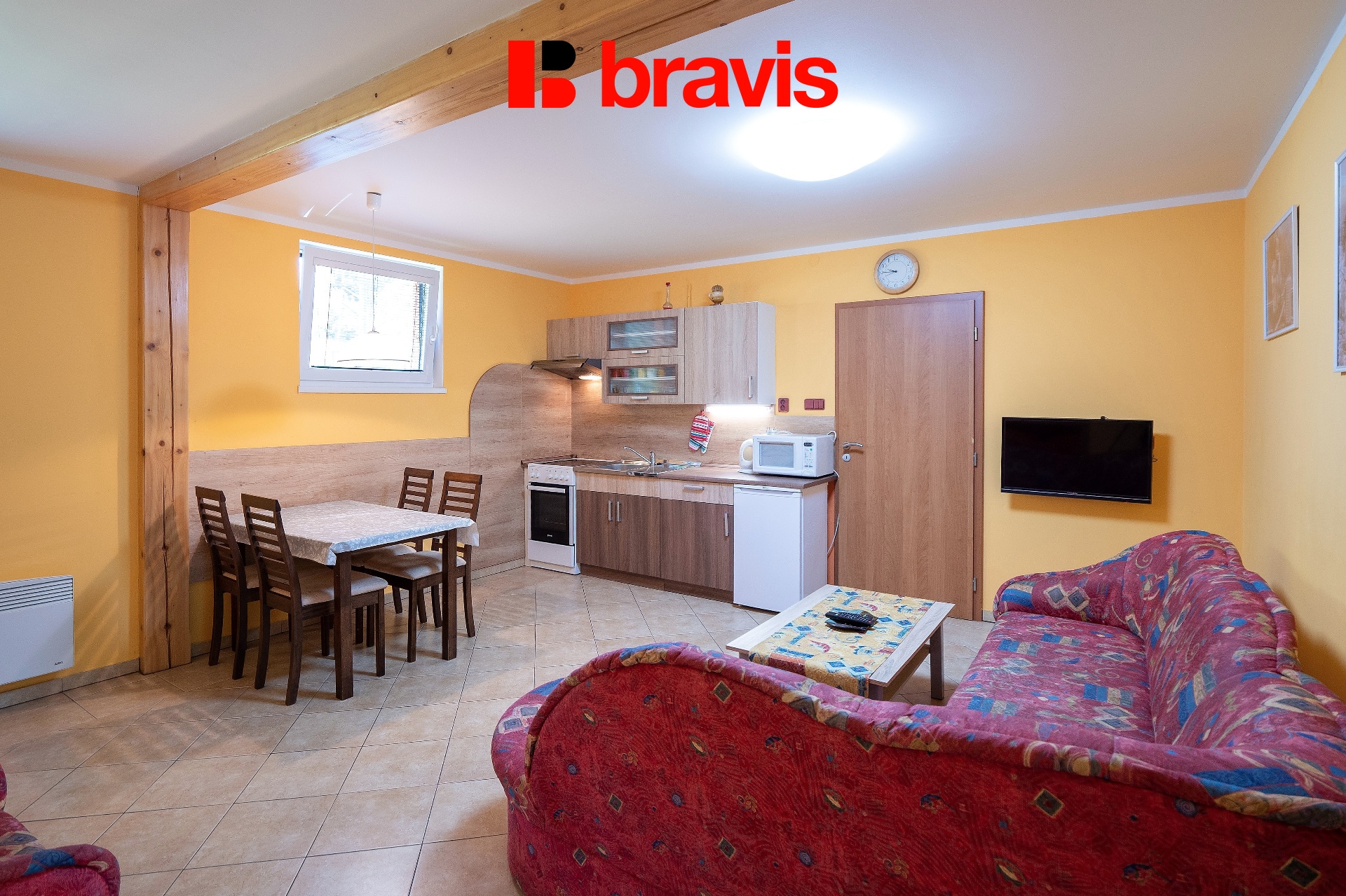 Oba apartmány 3+KK mají samostatný vstup, obývací místnost s kuchyňským koutem, 2 ložnice, koupelnu s WC. Prodej včetně současného vybavení v obou apartmánech. Obývací místnosti jsou vybaveny sedací soupravou, televizí, konferenčním stolkem a jídelním stolem se židlemi. Kuchyňské kouty disponují elektrickou troubou se sklokeramickou varnou deskou, lednicí a mikrovlnnou troubou. Ložnice jsou vybaveny lůžky a skříněmi. Nemovitost tak lze flexibilně využívat pro "dvojí pronájem", nebo kombinovat vlastní rekreaci s výnosem z krátkodobého ubytování. Lze využívat celoročně.