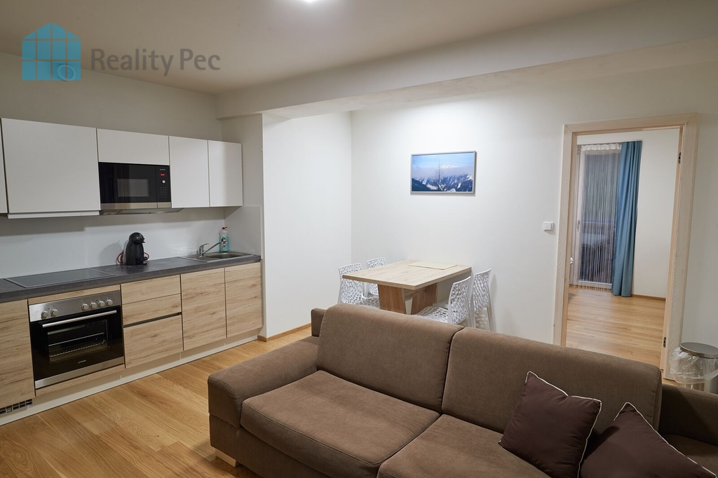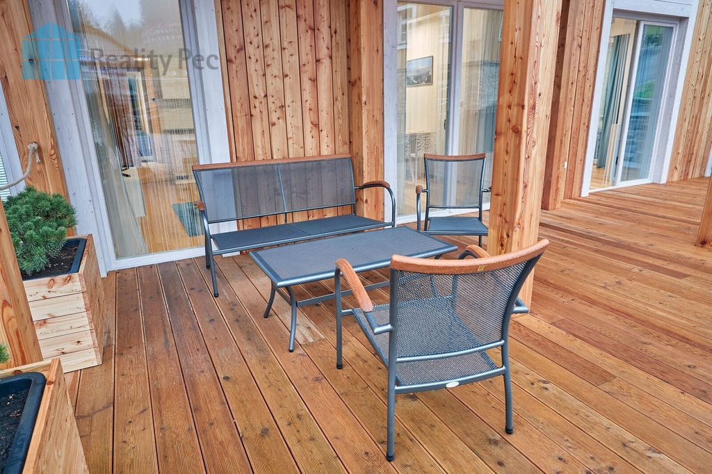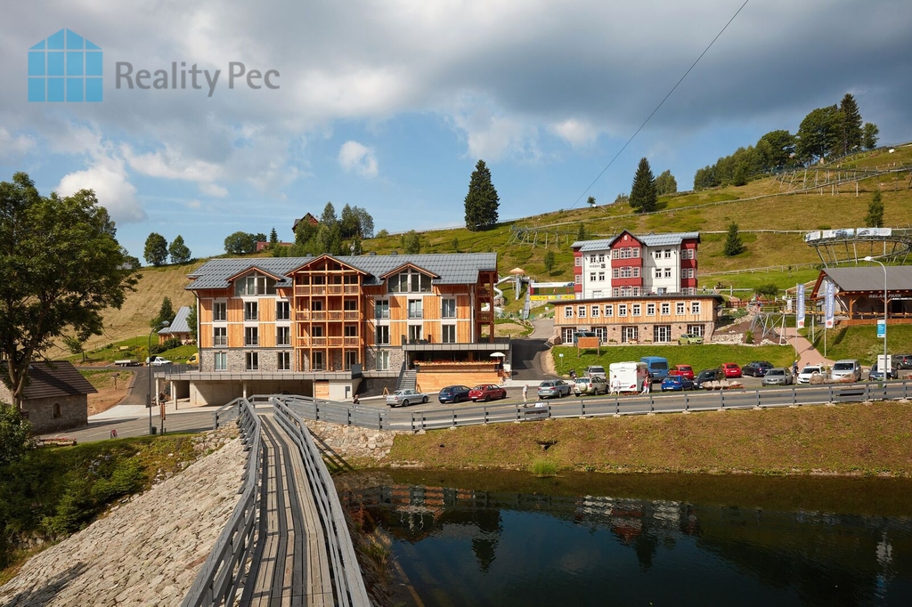 Nabízíme k prodeji moderní byt 2 + kk v Residenci Kovárna v centru Pece pod Sněžkou. Tento skvěle situovaný byt se nachází ve 2. podlaží 4-podlažního objektu a má celkovou podlahovou plochu 45.4m² . Kromě toho disponuje prostornou terasou o rozloze 34.9m², která nabízí posezení s výhledem. Byt je ve velmi dobrém stavu a je plně vybaven pro okamžité nastěhování. K dispozici je také 4m² sklepní kóje v 1. nadzemním podlaží vybavená sušákem na boty a vhodná pro uložení lyží, kol či jiného vybavení. V podzemní garáži je parkovací místo pro pohodlné parkování. Výhodou bytu je bezbariérový přístup, výtah a převod do OV. Připojení k internetu a centrální rozvod satelitního Tv vysílání je samozřejmostí. Residence Kovárna je celoročně dostupná, v blízkosti je zastávka skibusu a k lanovce na Sněžku je to pouhých 10minut chůze. Tato nabídka je ideální pro ty, kteří hledají komfortní bydlení v centru dění s možností využití skibusu a vychutnání si terasy s úchvatným výhledem na Krkonoše. V případě zájmu o prohlídku nás neváhejte kontaktovat.