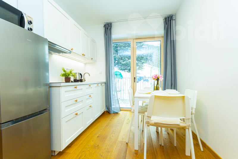 Interiér je vybaven podlahovým topením s možností dálkového ovládání, takže si teplotu nastavíte odkudkoliv ještě před příjezdem. Bezpečnost zajišťuje kamerový systém u vstupu do budovy. Díky moderním technologiím a novostavbě má apartmán velmi nízké provozní náklady.