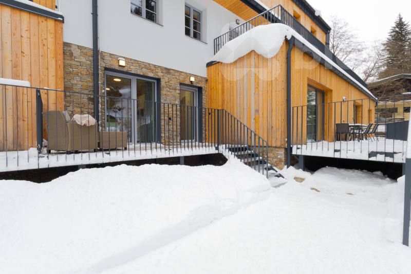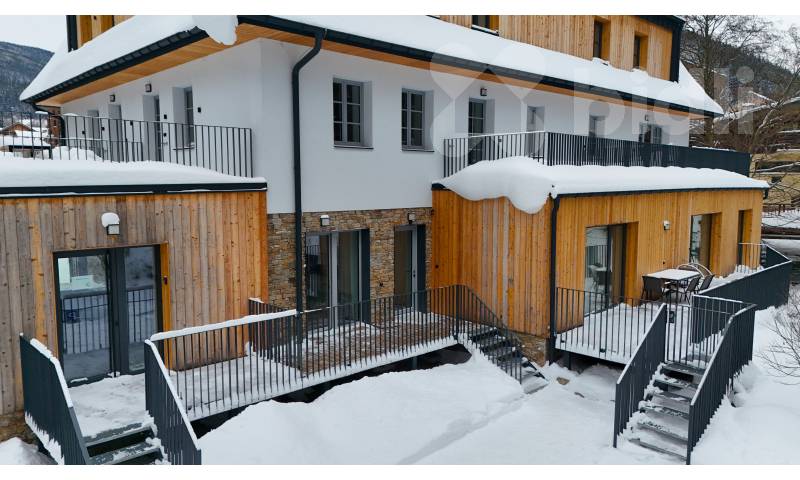 Apartmán je prakticky řešený a nabízí dostatek prostoru pro pohodlné bydlení i víkendové pobyty. Součástí jednotky je terasa, která zve k posezení s výhledem do horského prostředí, dále sklep pro uložení sportovního vybavení a parkovací stání přímo u domu, což je v této lokalitě velkou výhodou.