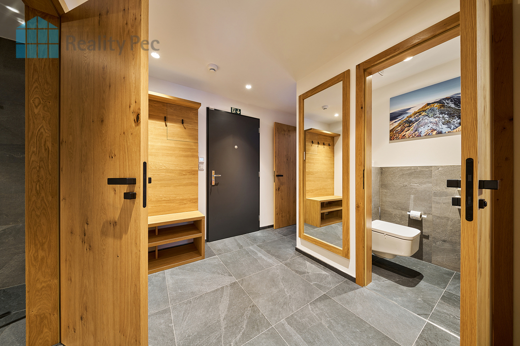 Nabízíme k prodeji exkluzivní, kompletně vybavený luxusní byt 3 + kk, nacházející se v obci Pec pod Sněžkou - Velká Úpa, v srdci malebné krajiny pod Sněžkou. Tato jedinečná nemovitost nabízí ideální kombinaci pohodlí pro rekreaci i trvalé bydlení a je skvělou příležitostí pro ty, kteří hledají klidné místo přesto v centru dění.