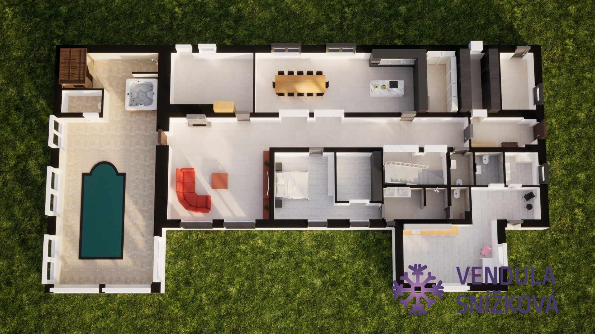 Nemovitost zaujme především svým rozsahem, technickým řešením a již vybudovanou wellness zónou přímo v domě.