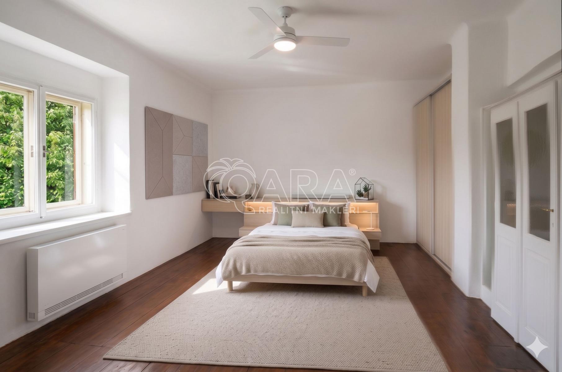 Tento dům smíšené konstrukce je v řadové zástavbě a nabízí dostatek místností pro velkou rodinu. Celková zastavěná plocha domu činí 154 m, zatímco užitná plocha je 99 m. Součástí parcely je také zahrada za domem o celkové výměře 261 m. Na zahradě je meruňka a ořech. Na hranici pozemku je studna s užitkovou vodou a je používaná napůl se sousedy. Další prostory najdete na půdě, která má v ploše přes 100 m a její prostor tak můžete využít pro další zvětšení domu, například sklad či jiné prostory.