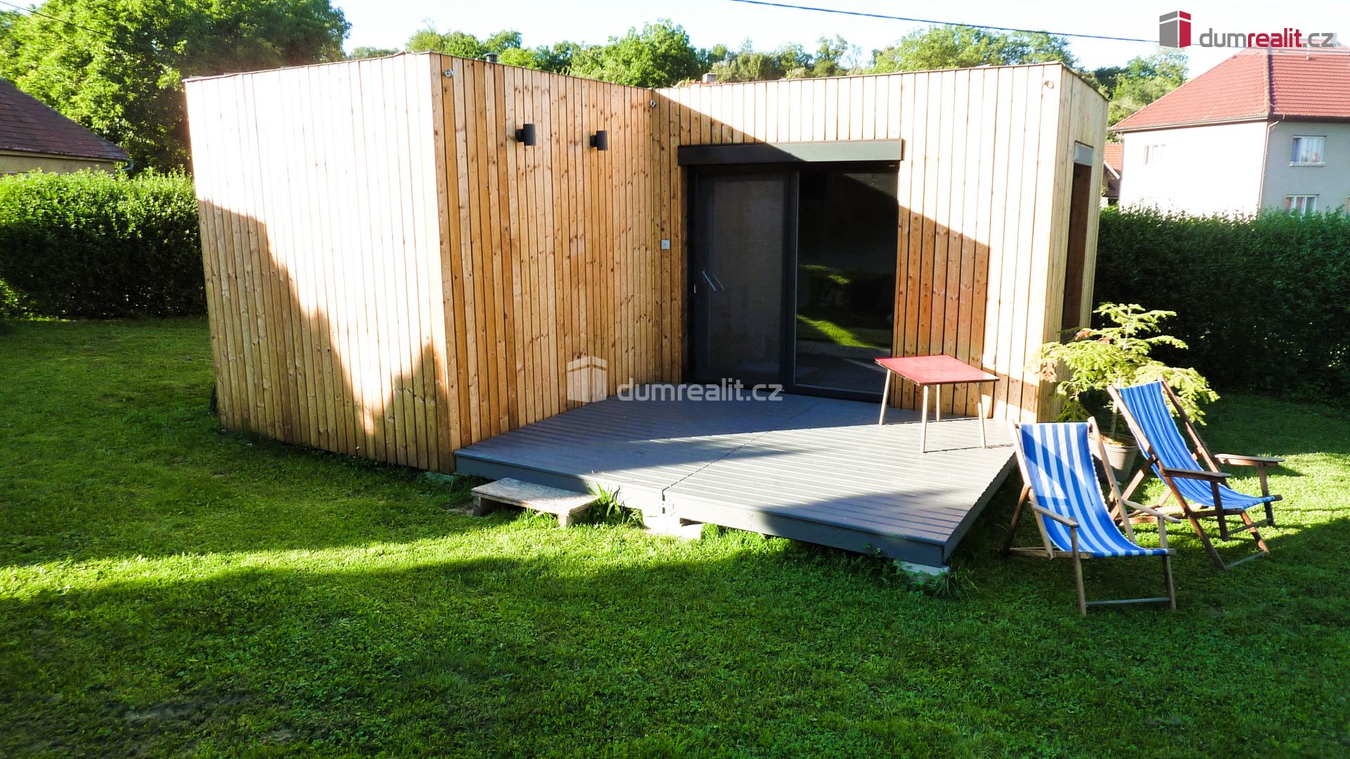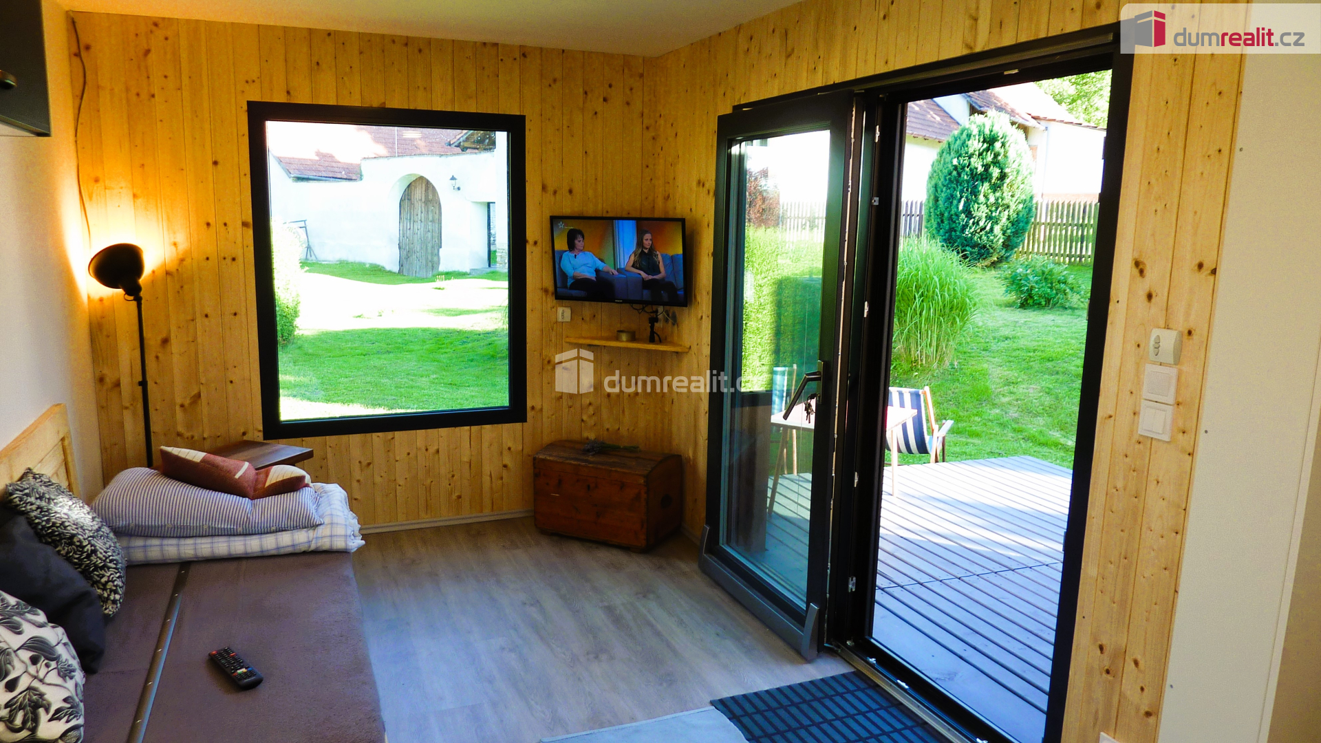 Na oknech i dveřích namontovány venkovní rolety + na vstupních dveřích je síť proti hmyzu.