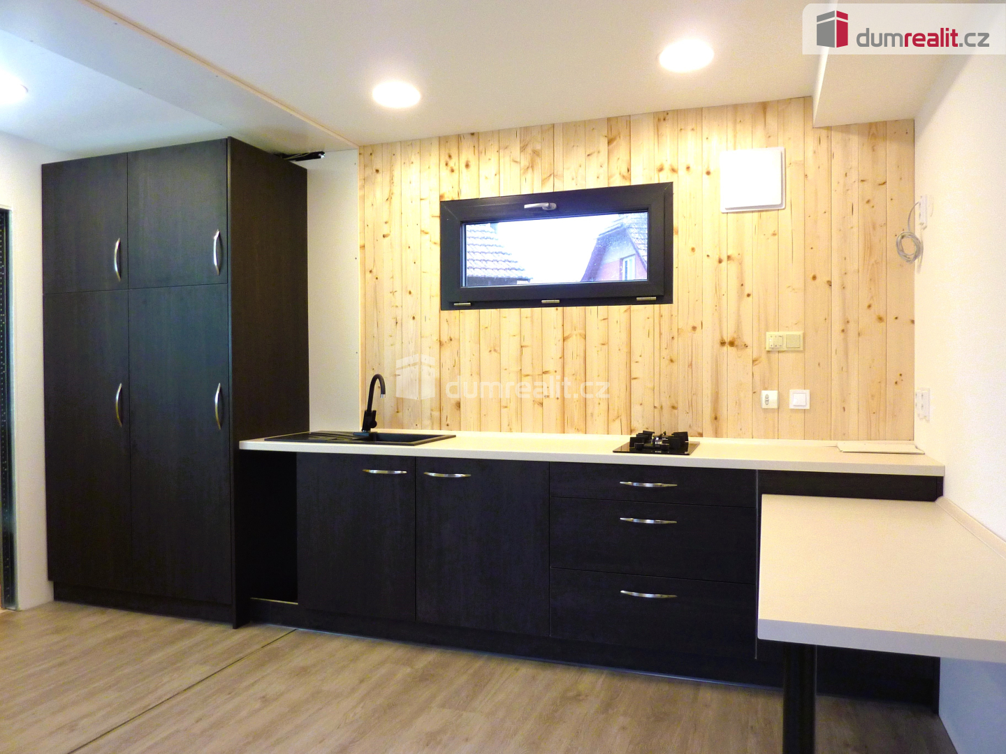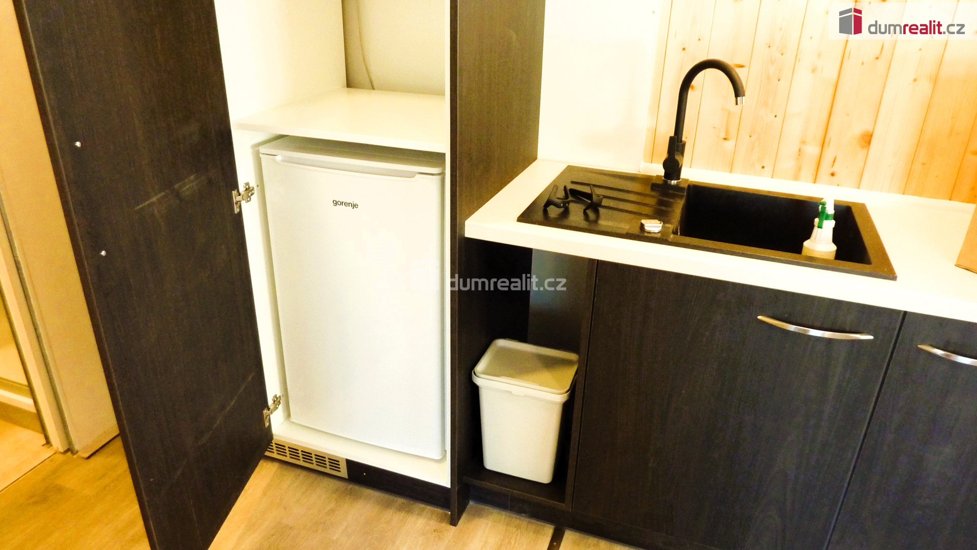 Kuchyně - kuchyňská linka vč. dřezu a baterie, vestavěná plynová dvouplotýnková varná deska na PB, lednice (gorenje), přípojka na pračku.
