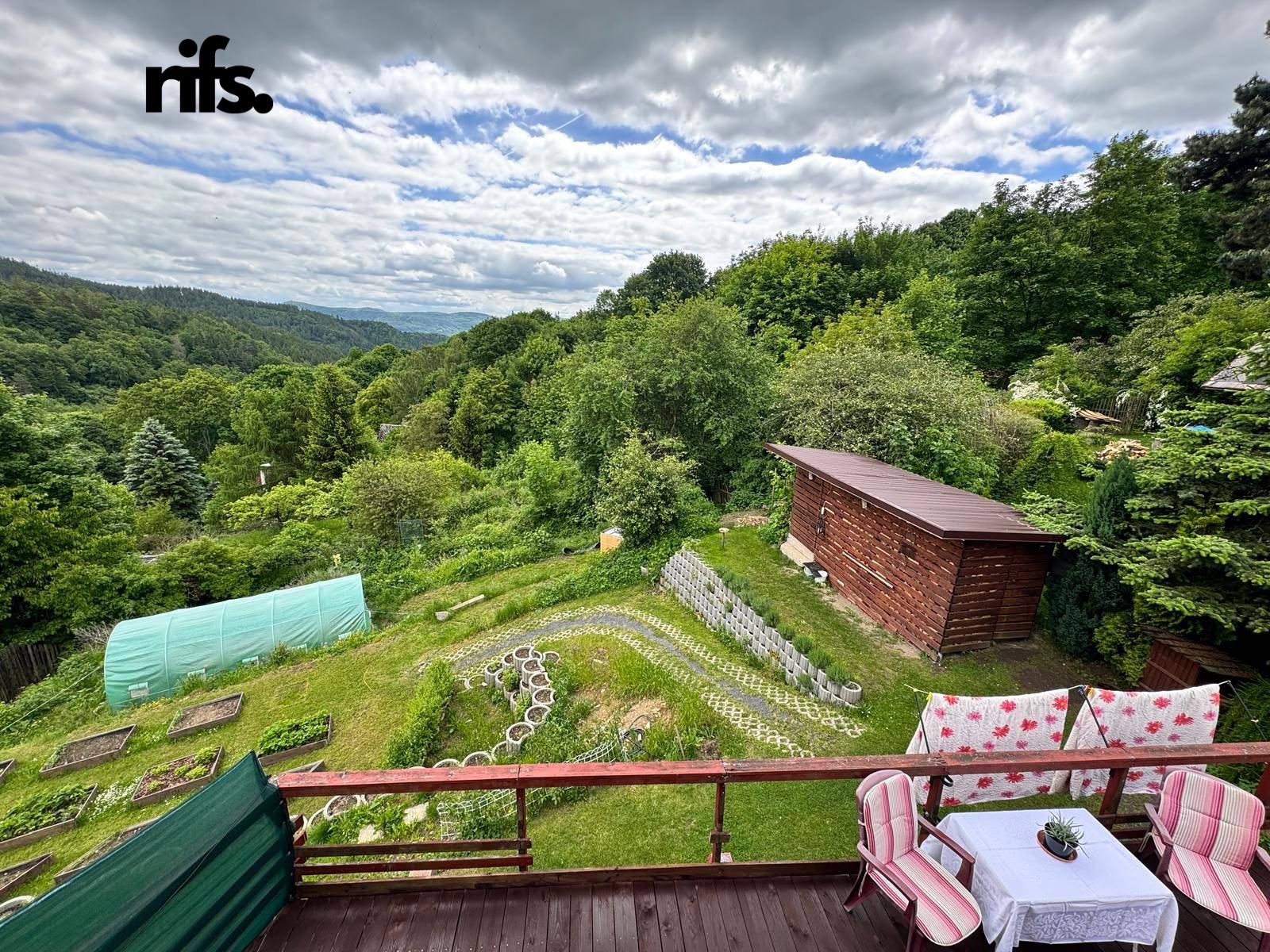 Velkou předností této nemovitosti je jedinečný výhled z terasy, ideální pro vychutnávání šálku kávy při ranním slunci nebo relaxaci při západu slunce. Před sluncem se schováte v příjemném krytém posezení u vchodu do chaty a k posezení s přáteli u ohně tu najdete také pěkné místo s výhledem do okolní krajiny.