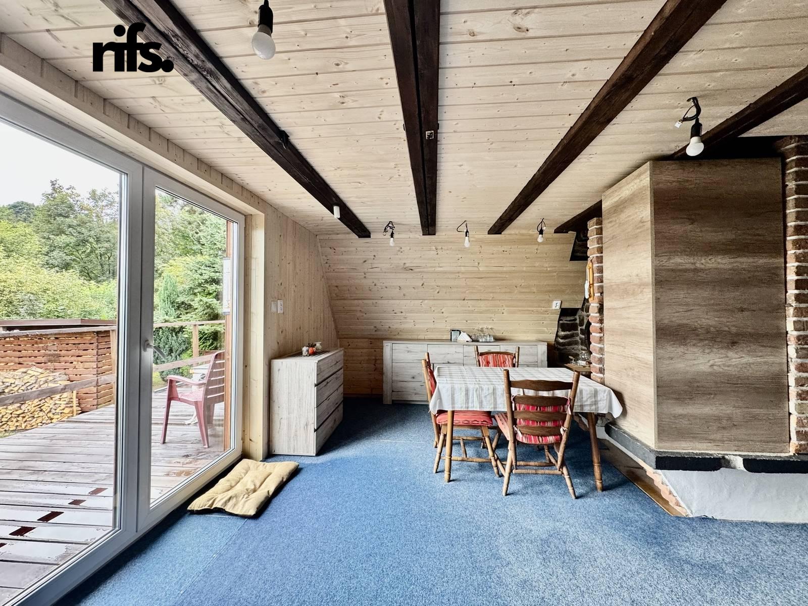 Nabízíme k prodeji rekreační objekt, který lze užívat celoročně, ideální pro útěk od každodenního shonu, nacházející se v malebné části obce Rájov, v katastru obce Perštejn, okres Chomutov. Tato samostatná patrová chata, disponuje v přízemí vstupní předsíní, samostatnou toaletou s velkým umyvadlem se sprchou, kuchyní, prostorným centrálním pokojem s klimatizační jednotkou, francouzským oknem a vstupem na terasu. V patře pak najdeme ložnici a koupelnu s vanou.