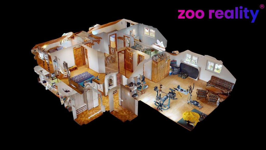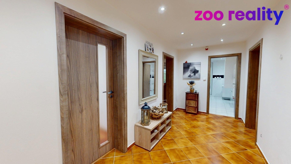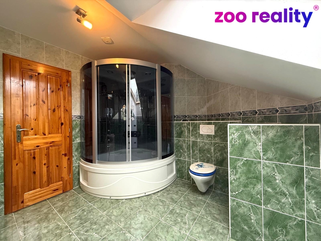 Nachází se zde prostorná chodba ze které je vstup do kuchyně propojenou s obývacím pokojem ze kterého je vstup na terasu, dále se v přízemí domu nachází koupelna se sprchovým koutem, umyvadlem a toaletou, technická místnost kde je i bojler na ohřev vody, z chodby je vstup také do garáže pro dvě vozidla. V patře domu se nachází koupelna s vanou, umyvadlem a toaletou, dětský pokoj s šatnou, ložnice, pokoj pro hosty a oddělená relaxační část ve které se nachází koupelna se sprchovým koutem, umyvadlem a toaletou, šatna a posilovna ze které je vstup na terasu. Dále zde najdeme i půdní prostor.