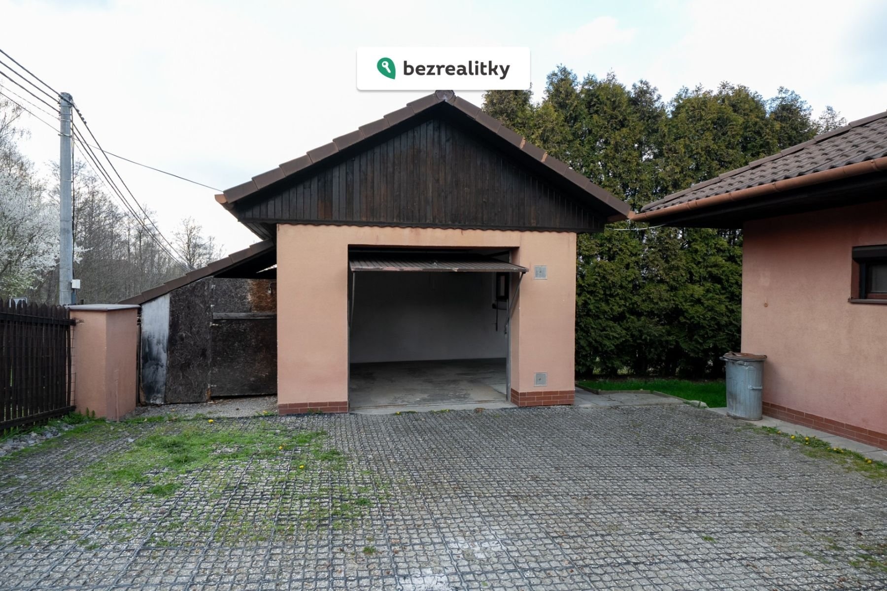 Nemovitost je v osobním vlastnictví a disponuje krytou garáží pro jedno vozidlo, na kterou navazuje kůlna, ale jde parkovat i před domem samotným.