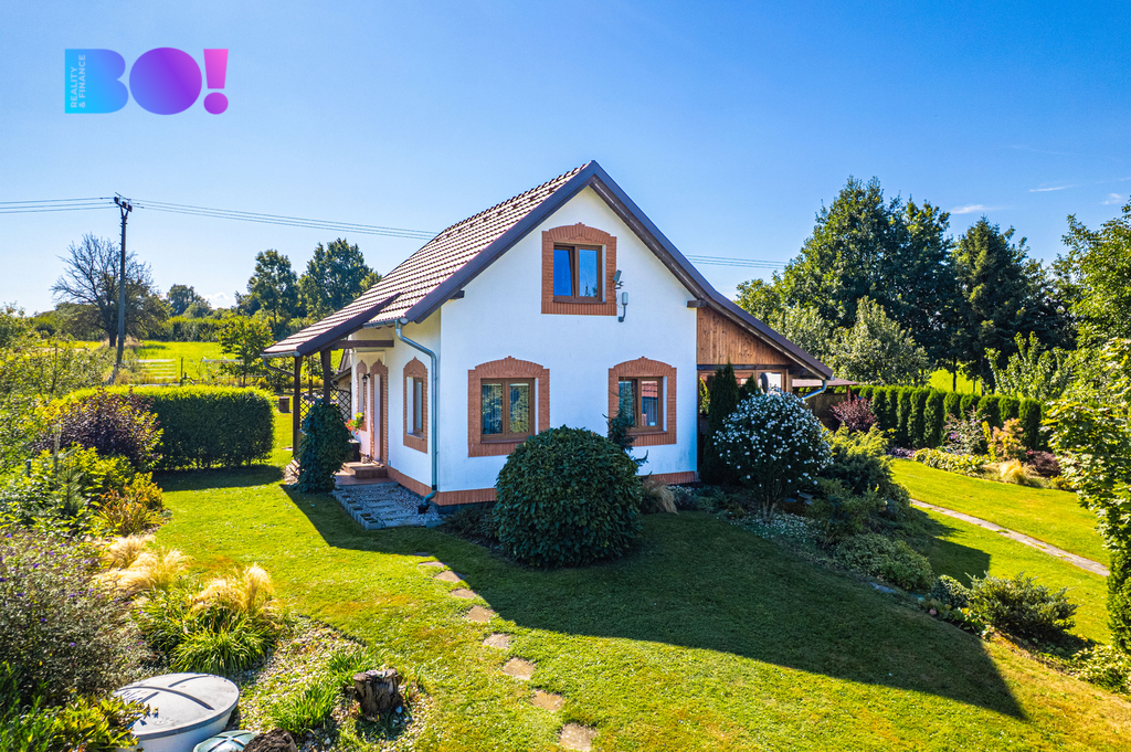 Rodinný dům o dispozici 4+kk, s obytnou užitnou plochou 80,7 m², nabízí útulné bydlení s výhledem do zeleně z každého okna.