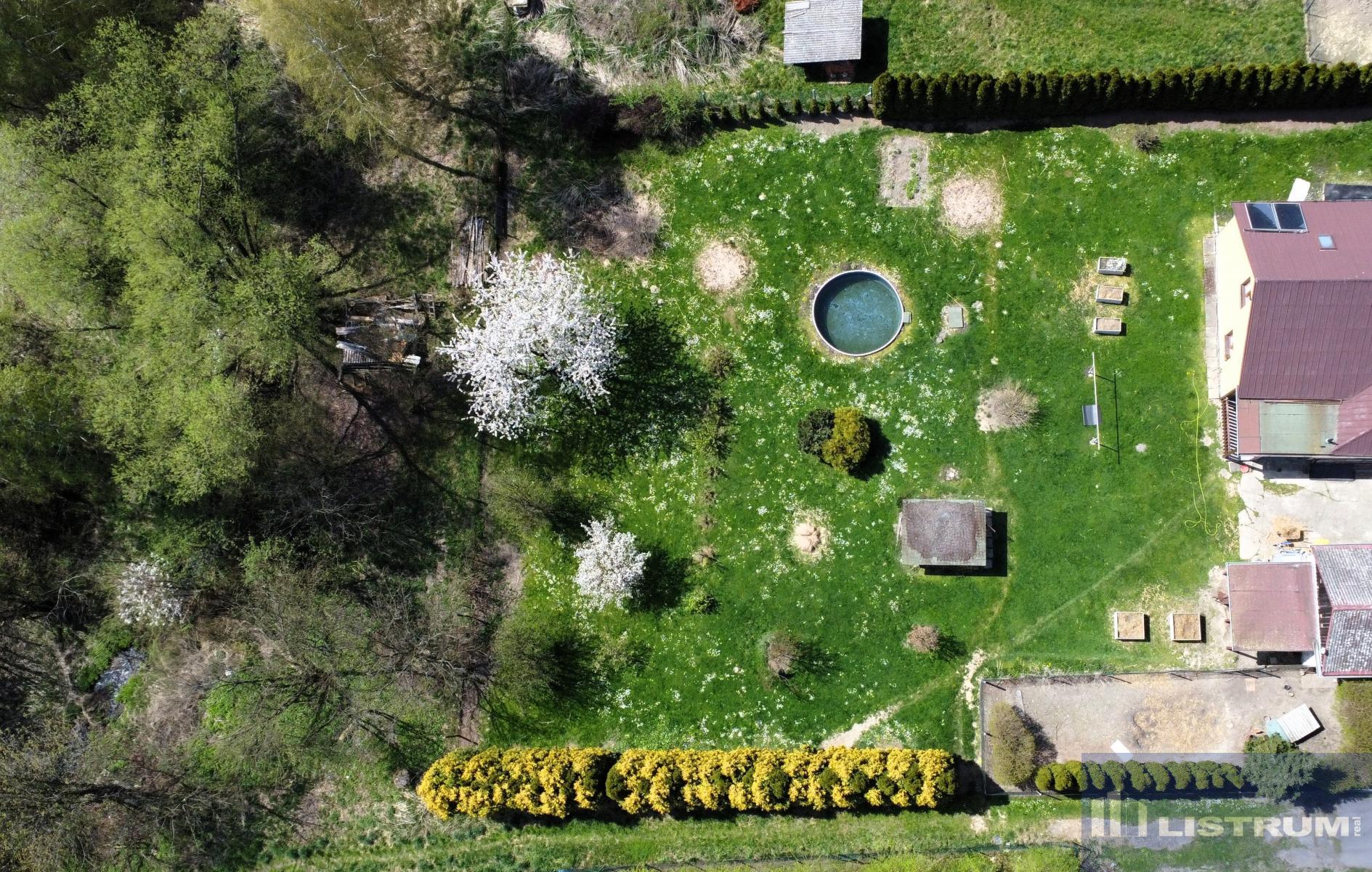 Celý pozemek je rovinatý, oplocený a situovaný v klidné části obce na konci slepé ulice.
