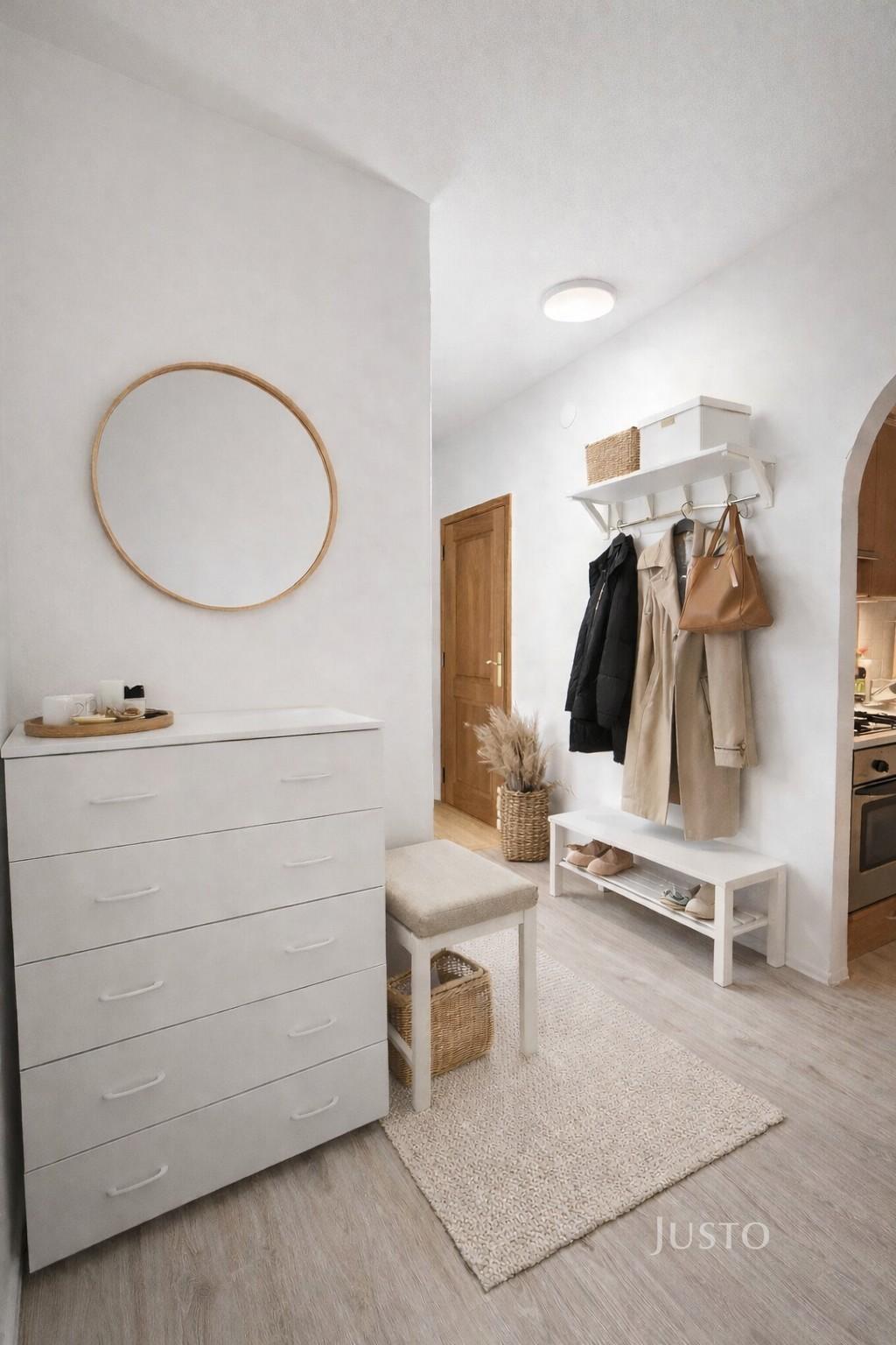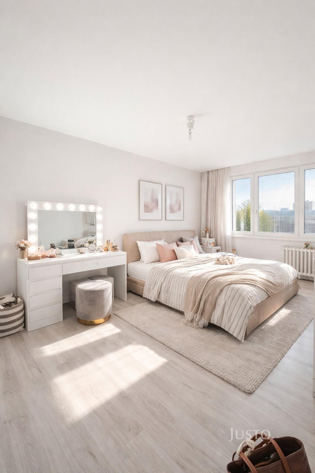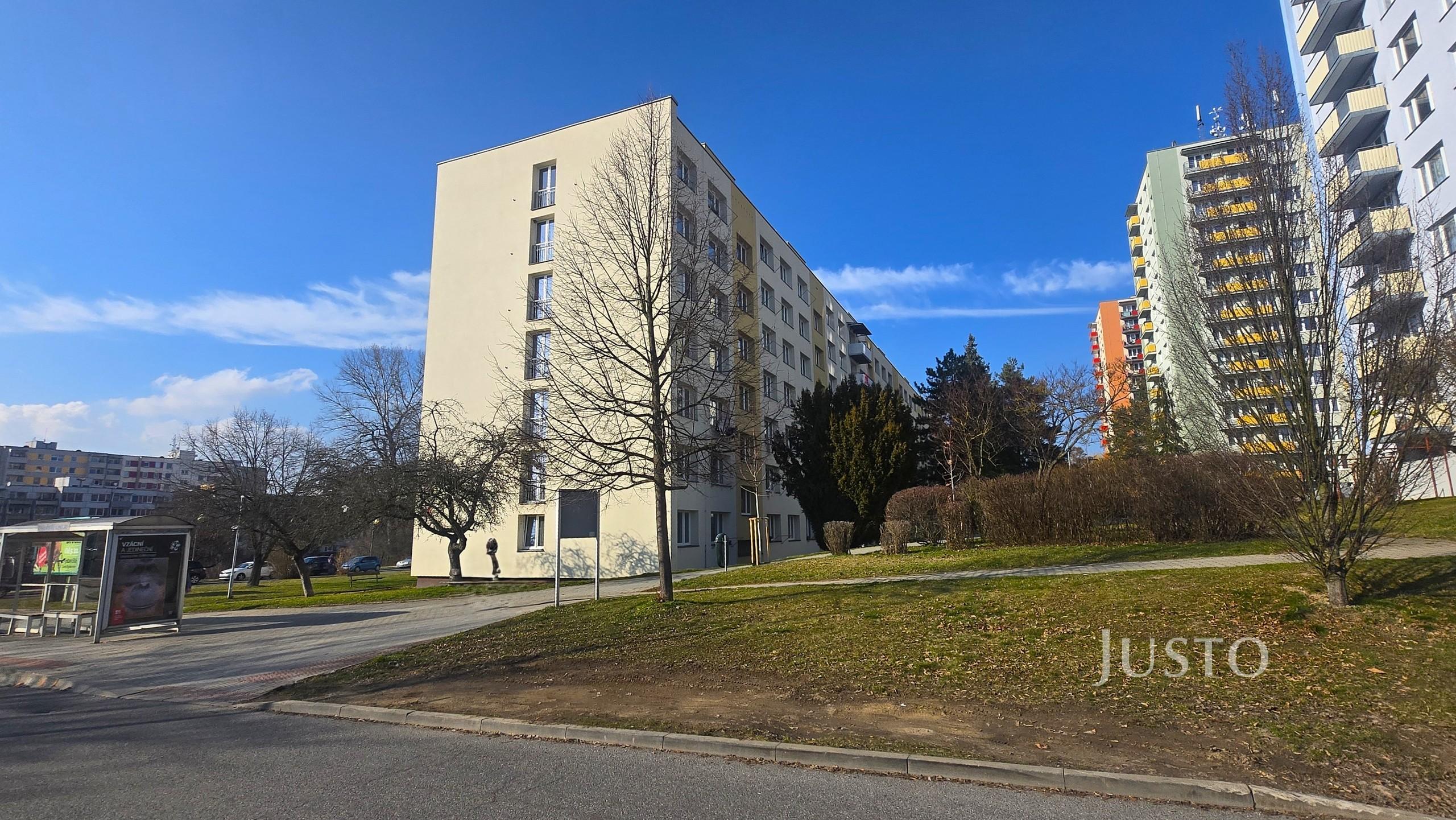 Samotný byt prošel částečnou rekonstrukcí – byly vyměněny podlahy, vybudováno zděné bytové jádro a modernizována kuchyně. Kuchyň je prakticky řešena s jídelním koutem a je otevřená do obývacího pokoje, ze kterého je vstup na balkon s výhledem do zeleně.