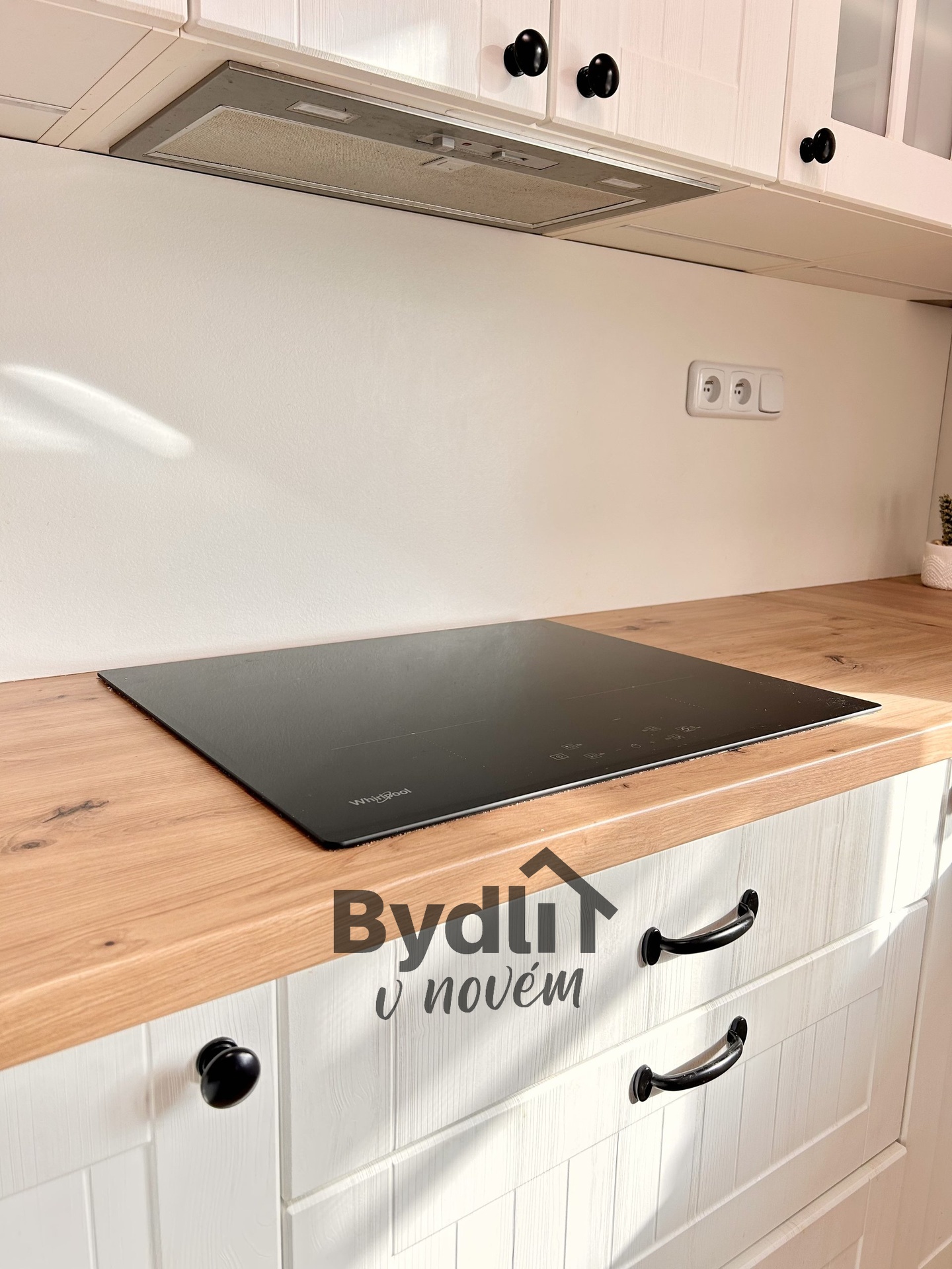 Kuchyně prošla kompletní rekonstrukcí a byla vyrobena na míru v provensálském stylu. Nabízí dostatek úložného prostoru, kvalitní materiály a estetiku, která zaujme na první pohled.