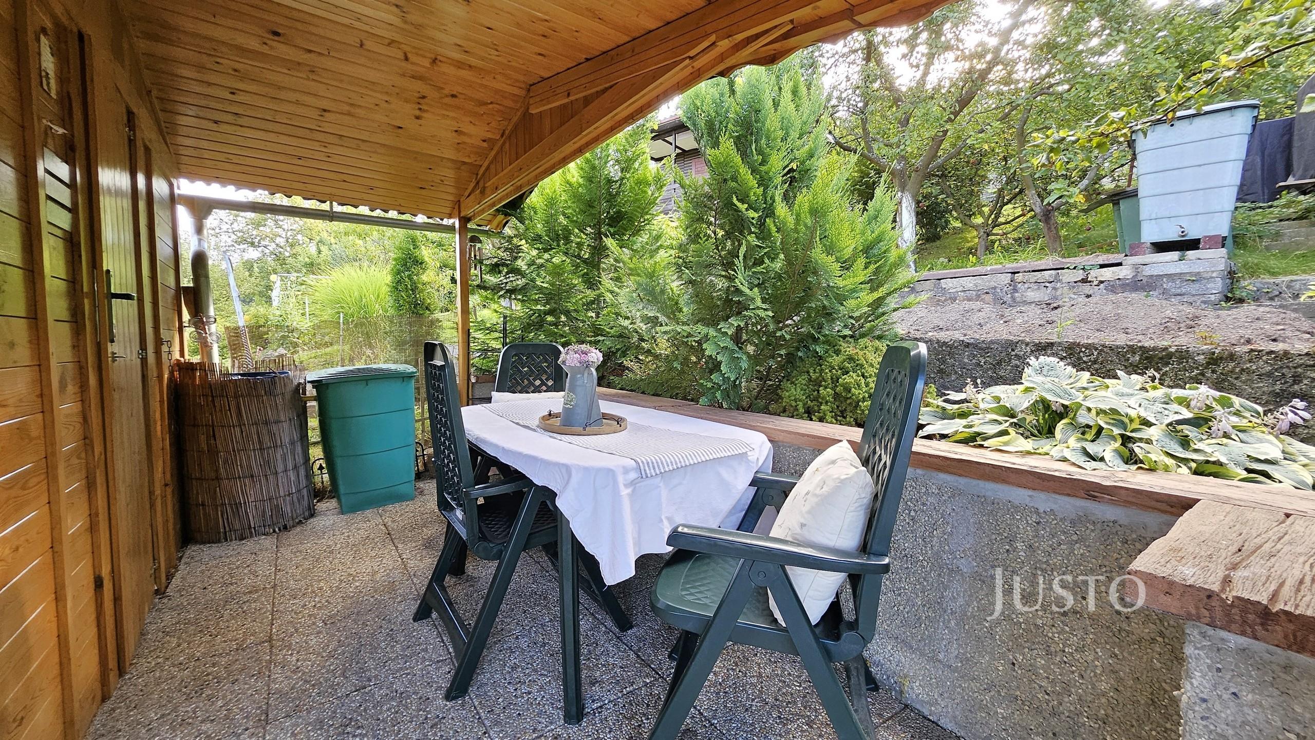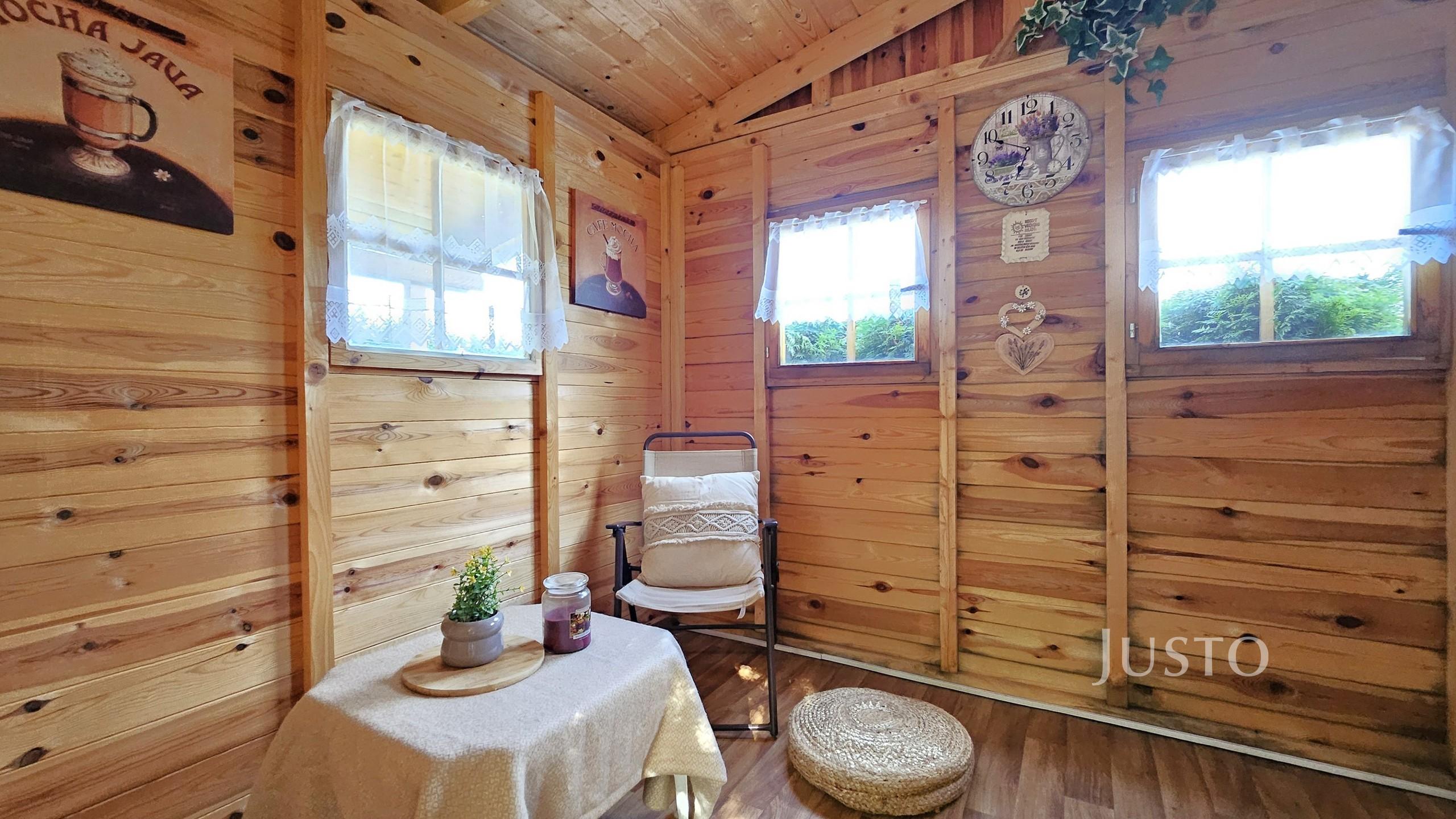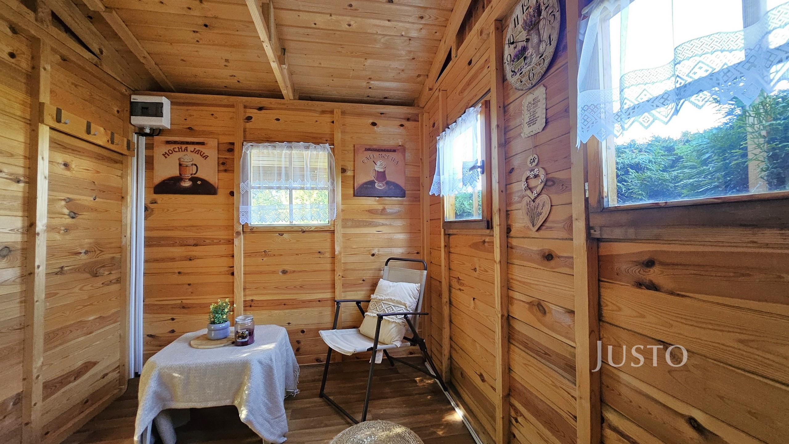 Krásná dřevěná chatička se zastřešenou terasou a výhledem na město Písek nabízí prostor pro odpočinek. Do chaty je přivedena elektřina. Voda je na pozemku ze společného zdroje, který je k dispozici v zahrádkářské sezóně. Chata je akorát tak velká, abyste si v ní mohli připravit jídlo, případně přespat.