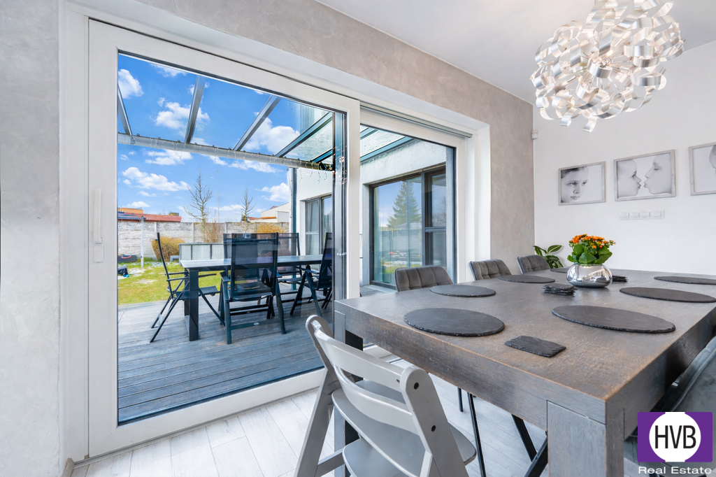 Provoz domu = nízké náklady - podlahové vytápění je řešeno tepleným čerpadlem vzduch voda Convert AW 14, od firmy AC HEATING, nízká spotřeba energie díky FVE - montáž v roce 2022, zabezpečovací systém. V oknech venkovní zatemňovací rolety. Parkování u domu zajišťuje kryté stání pro dvě auta, včetně nabíječky pro EV. Soukromí na zahradě zajišťuje betonový plot. Pro děti je zde zřízeno hřiště, domek, pískoviště. Úložný prostor zajišťuje zahradní domek v rohu zahrady. Promyšlený RD, včetně moderních technologií, prostoru je výbornou volbou pro rodinu. V blízkosti cyklostezka, příroda, 12 min do centra. Více info v RK.